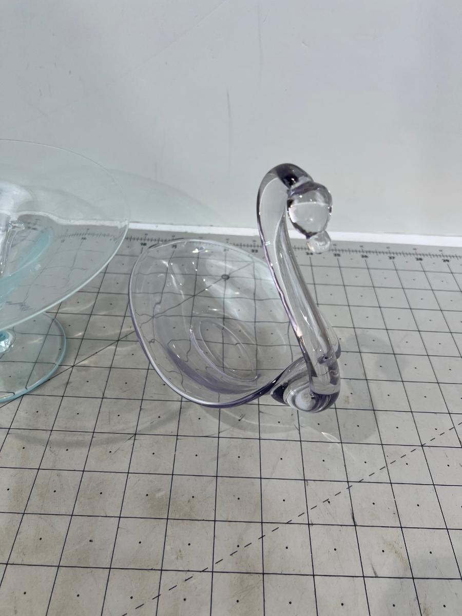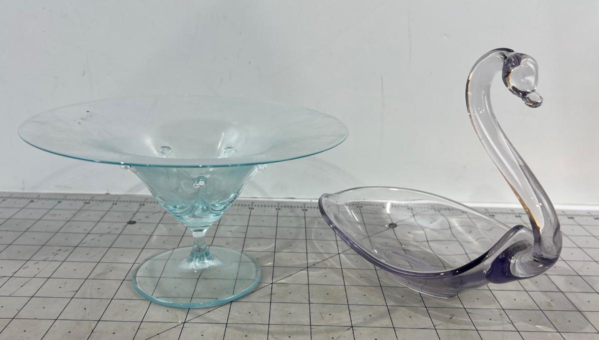 2 Pieces of Hand Blown Glass; Swan & Candy Dish