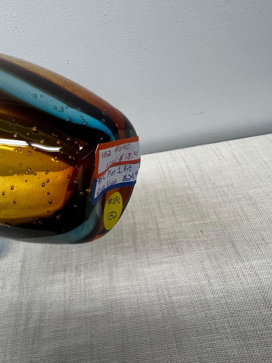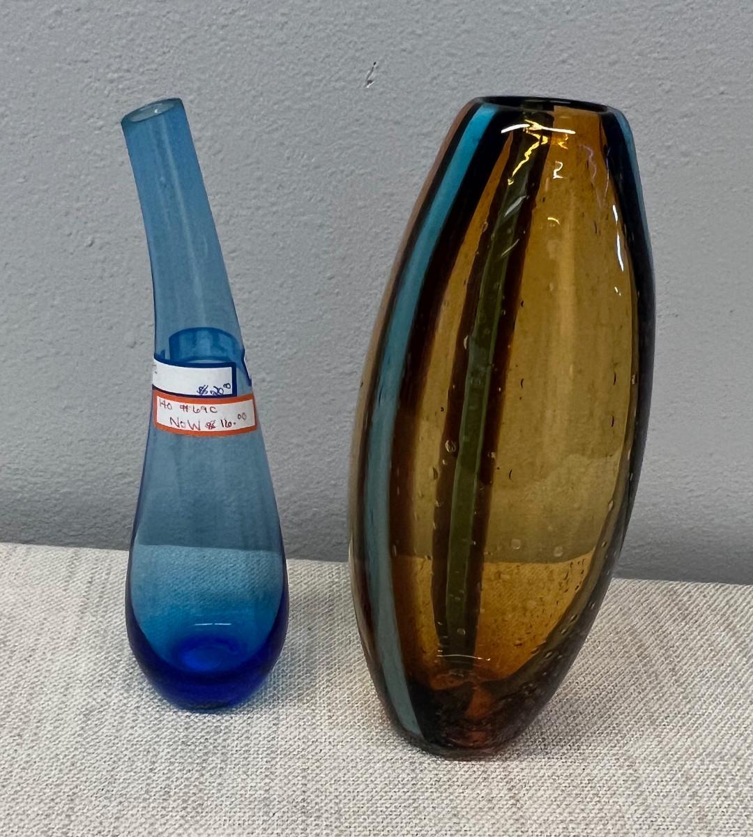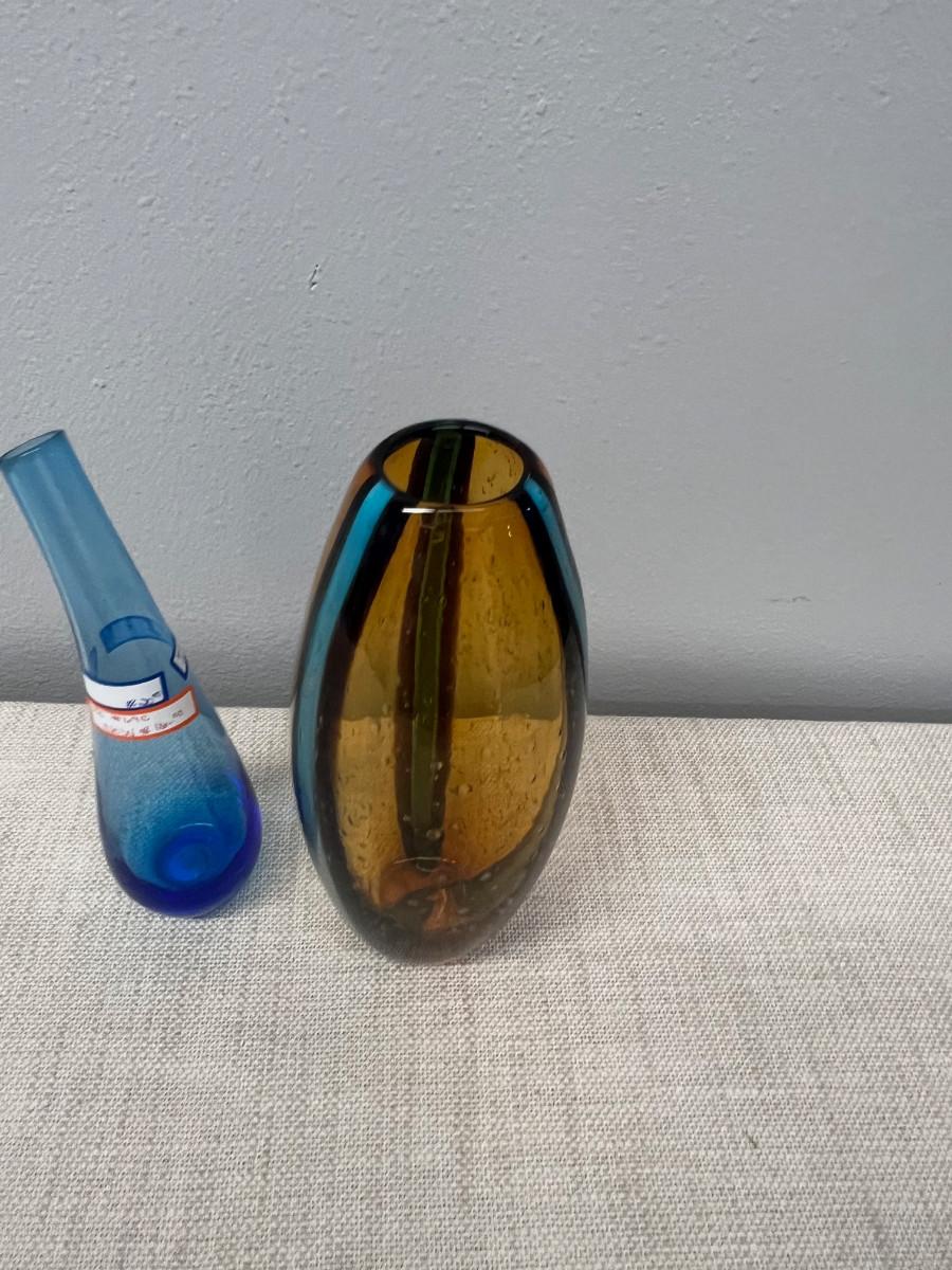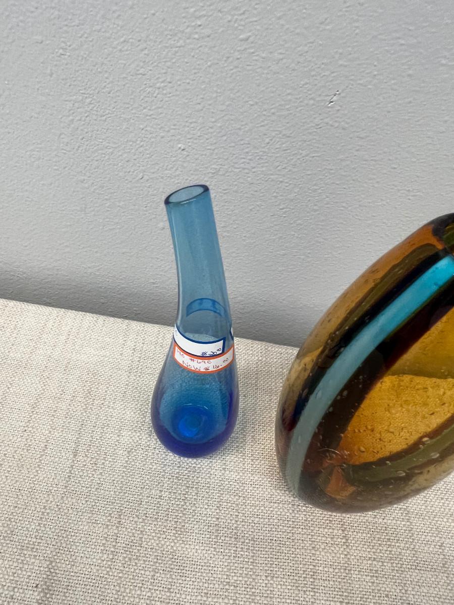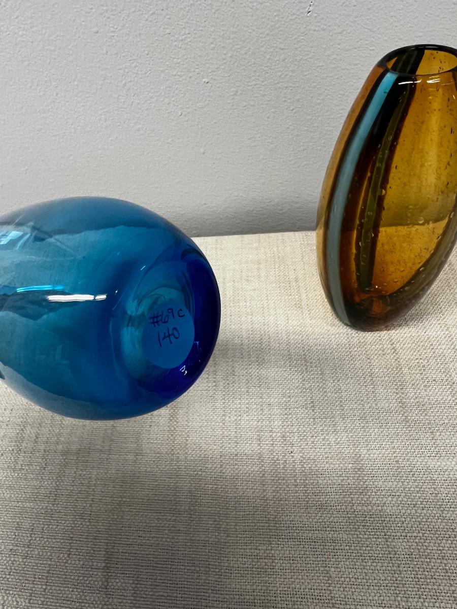 2 Pieces of Hand Blown Glass - Blue and Amber