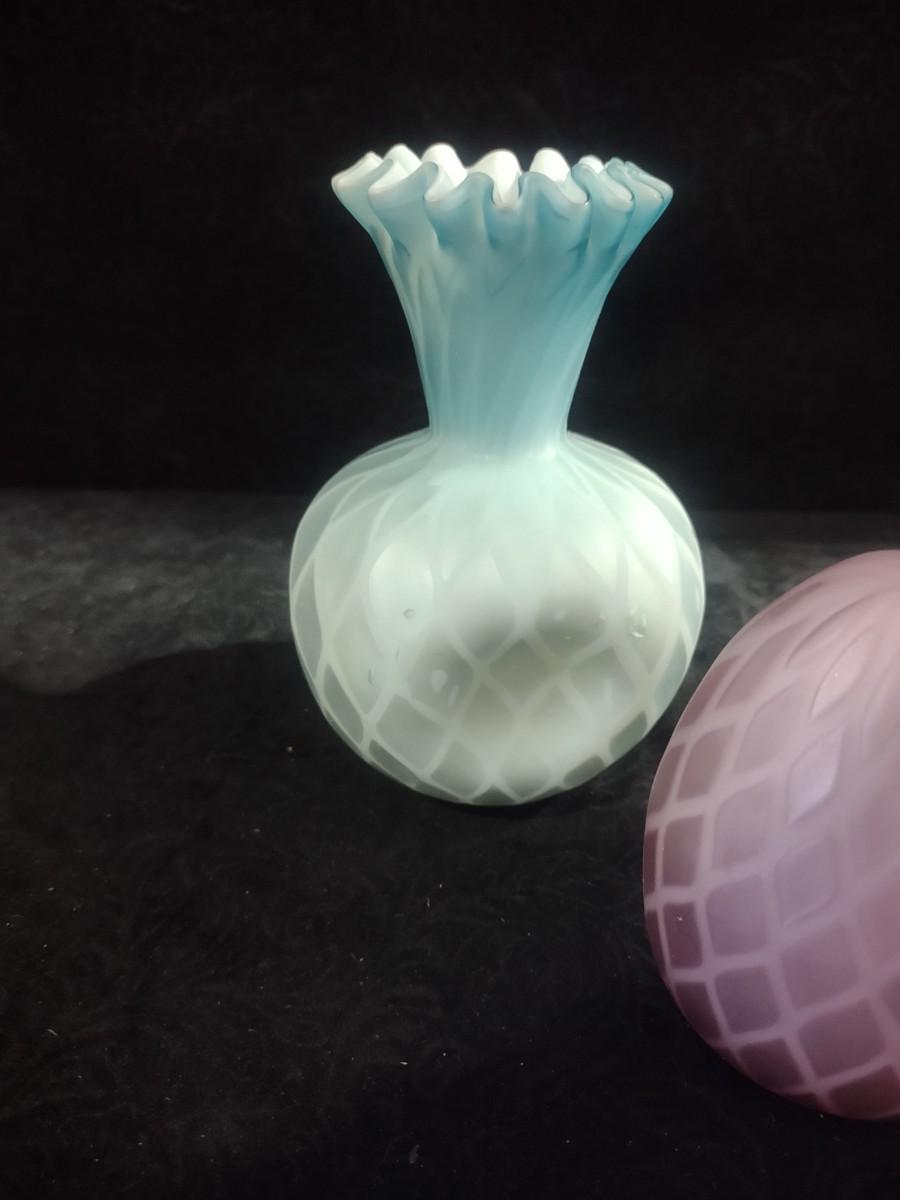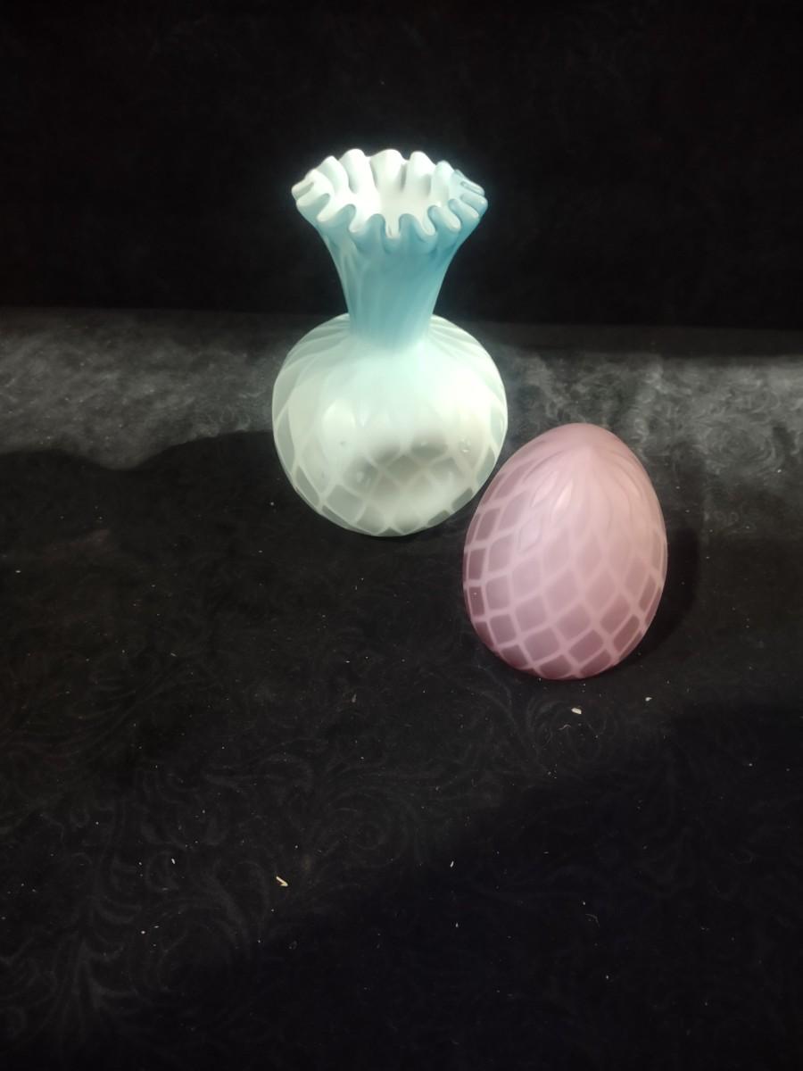 2 PIECES OF SATIN GLASS DIAMOND QUILTED