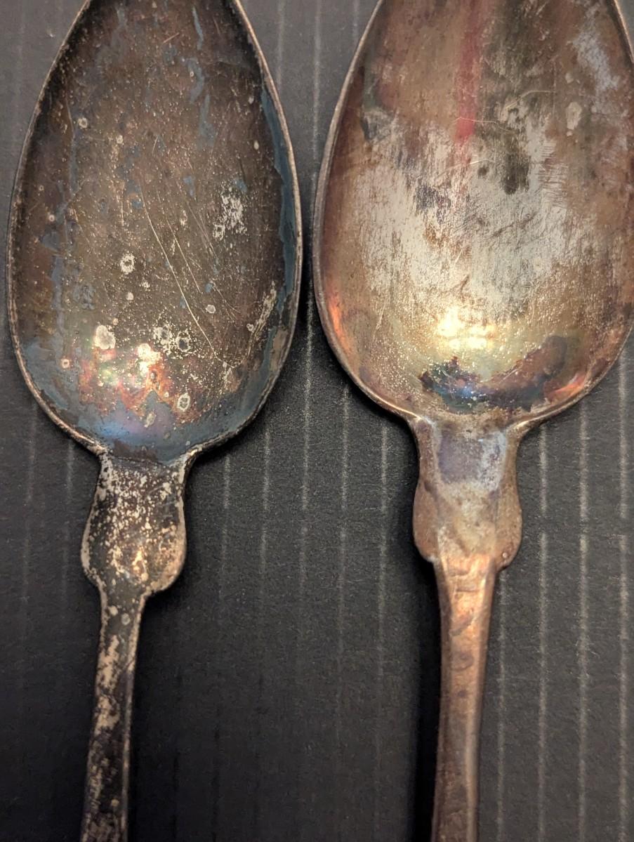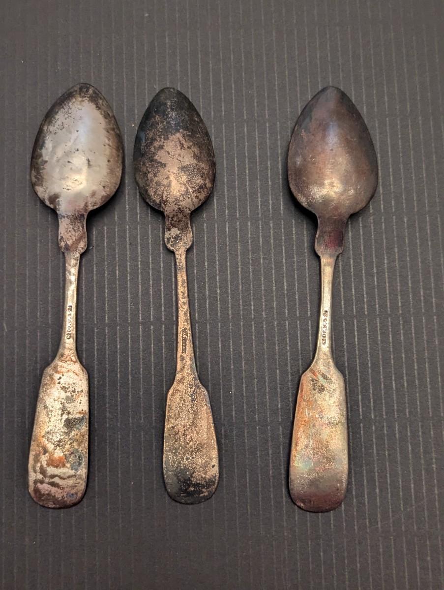 2 Pieces Of Antique Victorian J & W Moir Silver Fiddleback Serving Spoon 19th Century Handmade American Flatware 1844-1869 & 1 Marked Spoon 54g