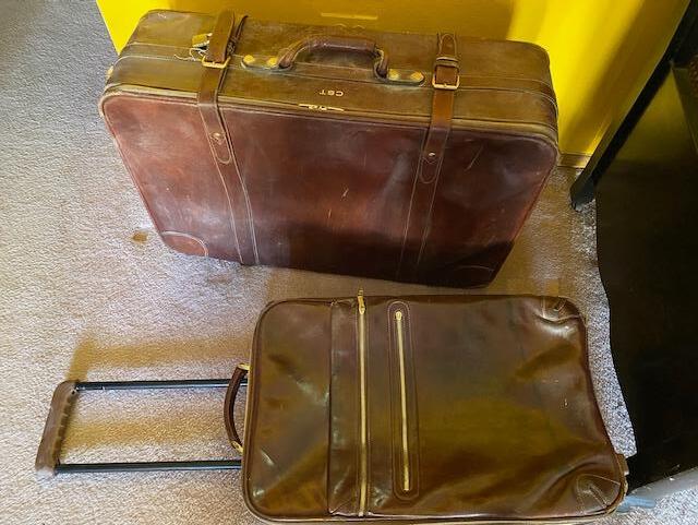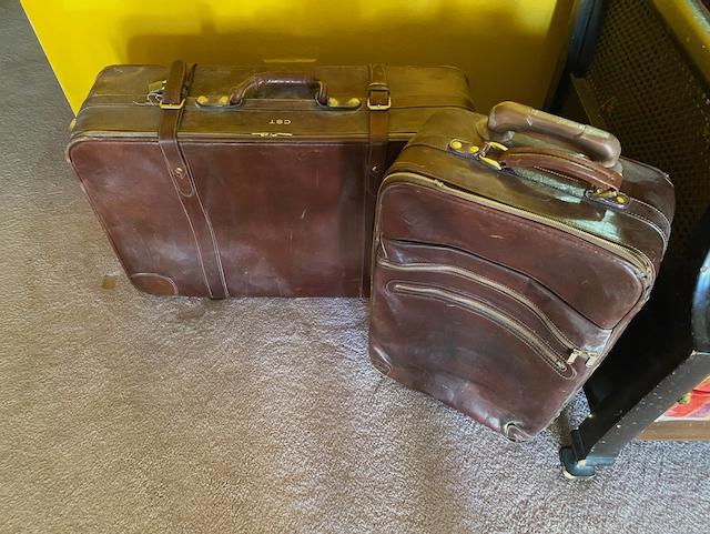 2 pieces or leather luggage - carry on bag 22 x 12.5 x7 larger piece 27.5 x 18 x 8 Italian made