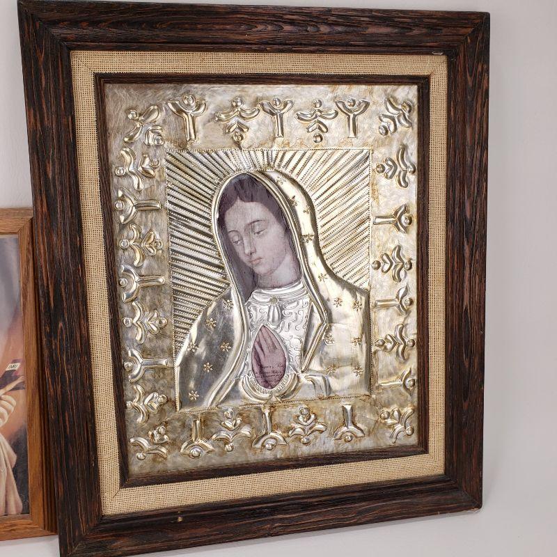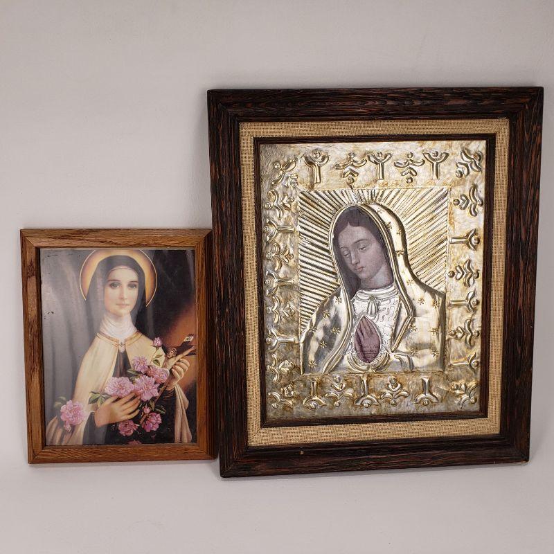 2 Pieces Religious Wall Art - Metal Relief and a Print