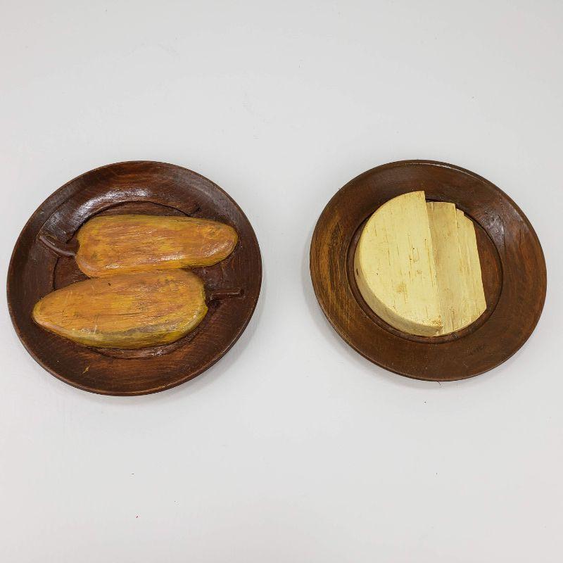2 Pieces Wooden Wall Art - Cheese and Peppers. 7.5" Diameter