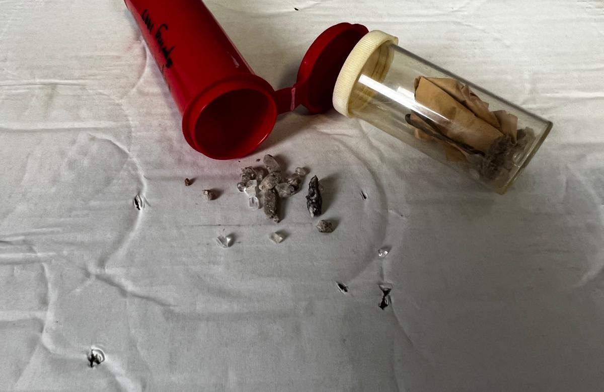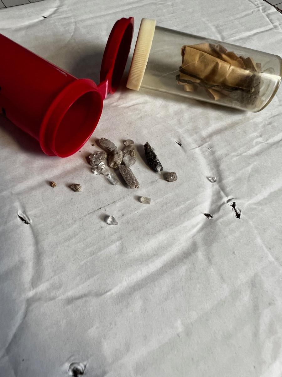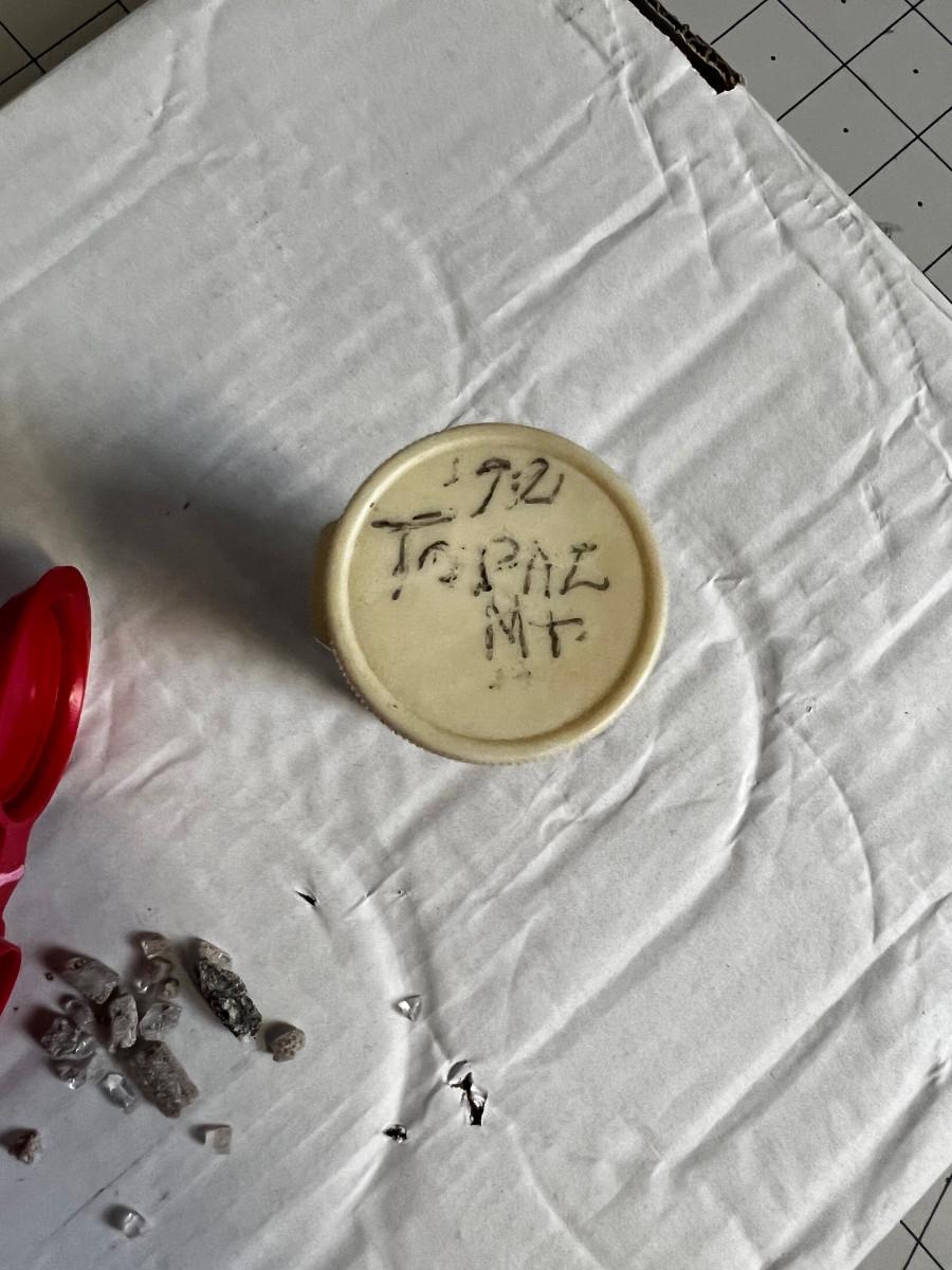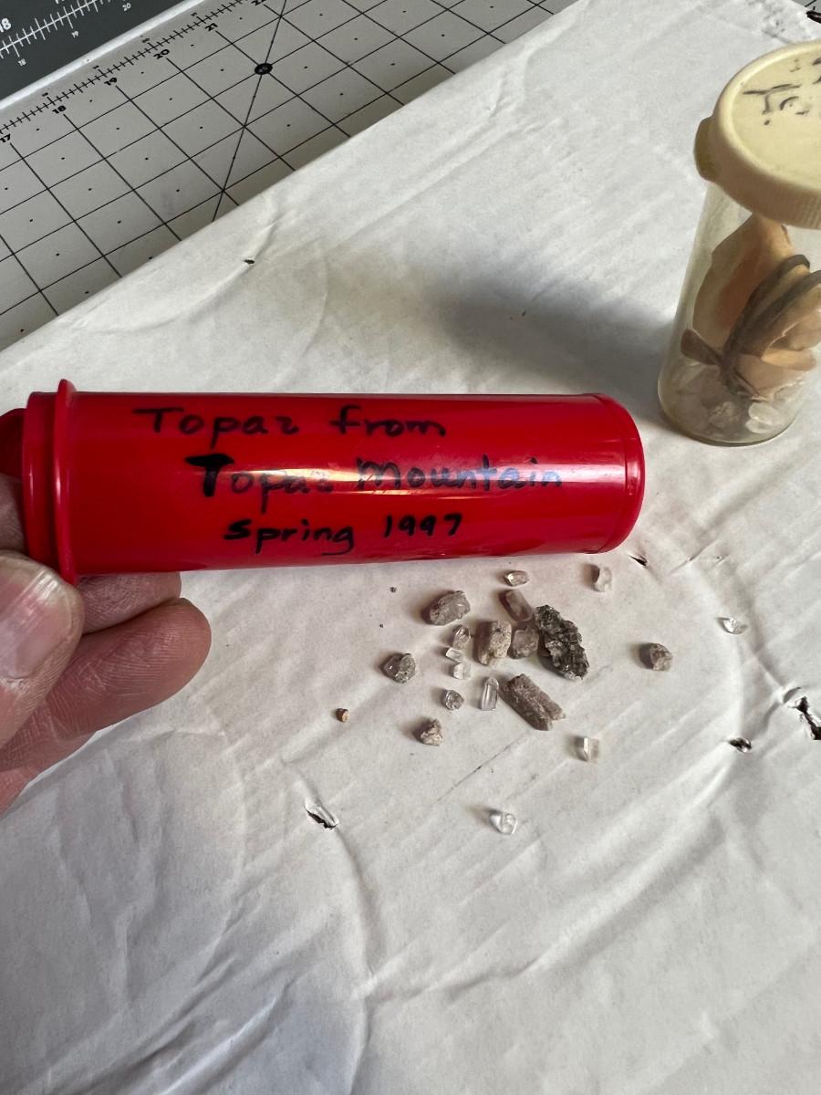 2 Pill Bottles of Crystals Marked Topaz Mountain