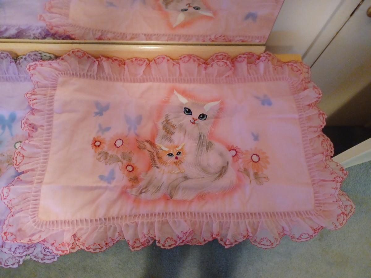 2 pink hand painted kitty shams