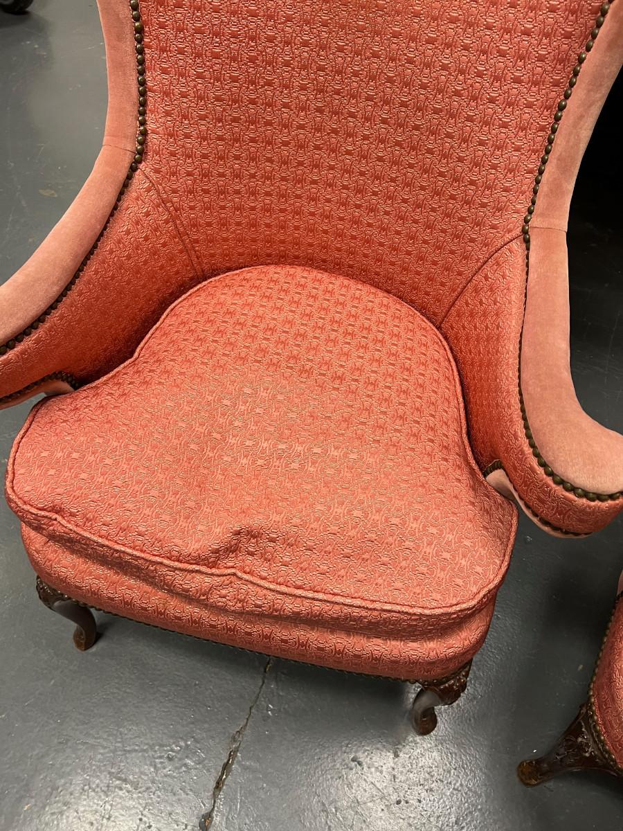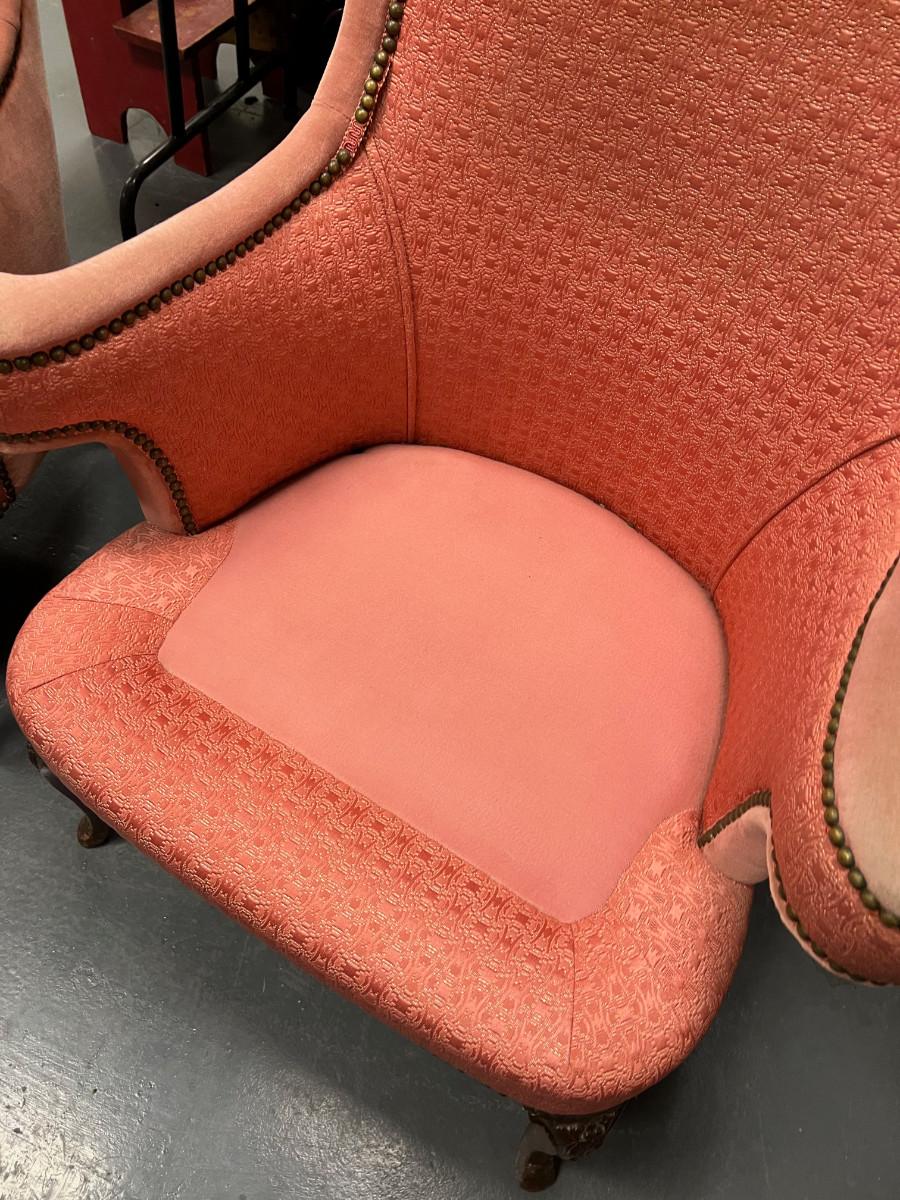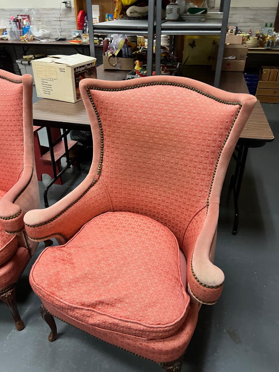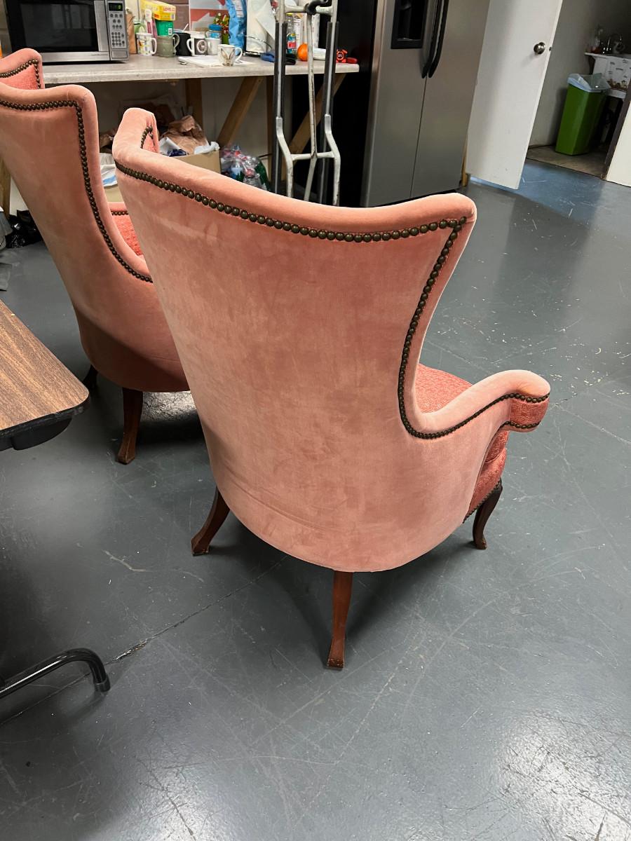 2 Pink Wing Back Rolled Arm 1940's chair