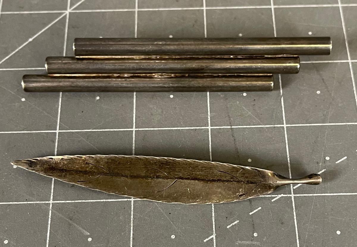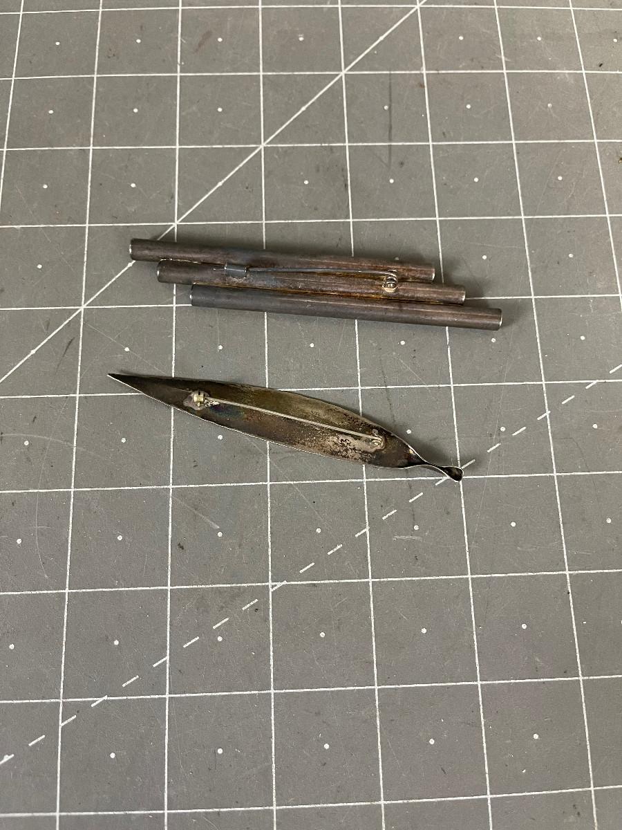 2 Pins: Abstract MCM Sterling Silver Pins Feather and Pipes.
