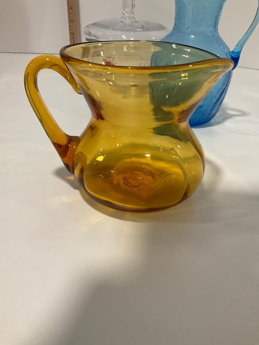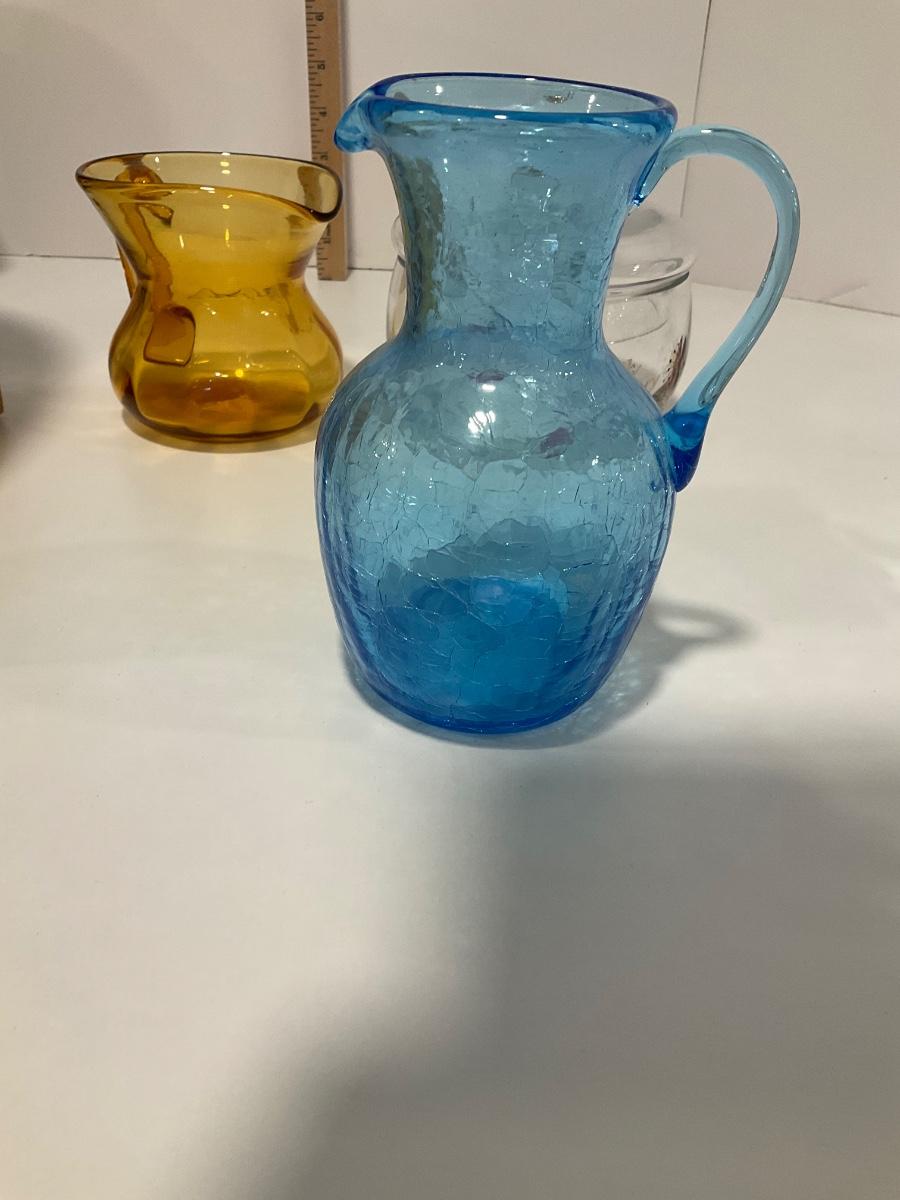 Blue crackled glass pitcher