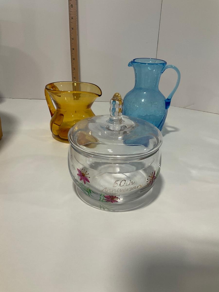 2 pitchers and 50th Anniversary Dish with lid