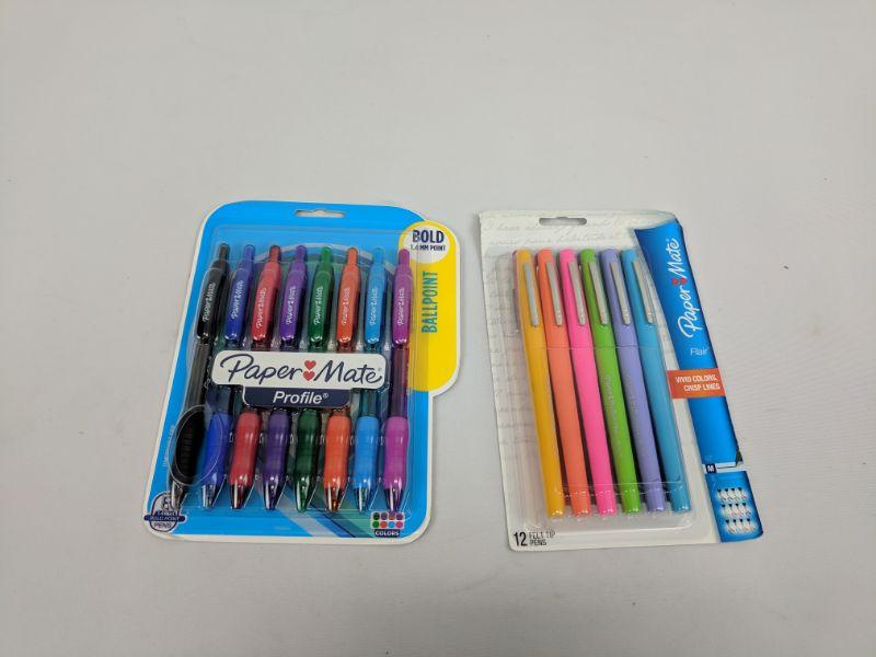 2 Pkg Paper Mate Pens, 8 Ballpoint Pens & 12 Felt Tip Pens - New