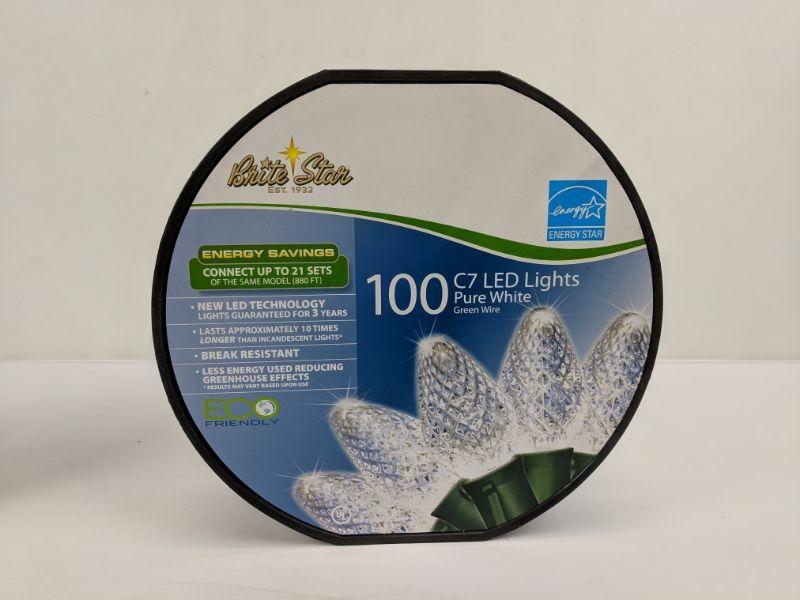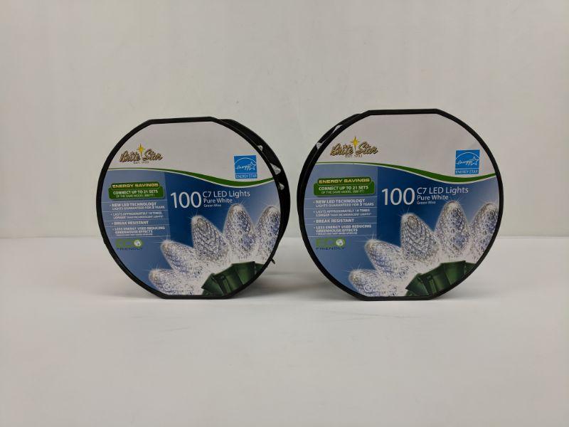 2 Pkgs-100 C7 LED LIghts, Pure White/Green Wire, Energy Saving - New