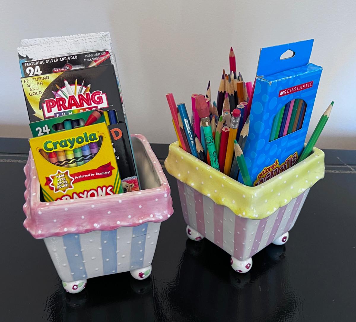 2 Planters of Colored Pencils
