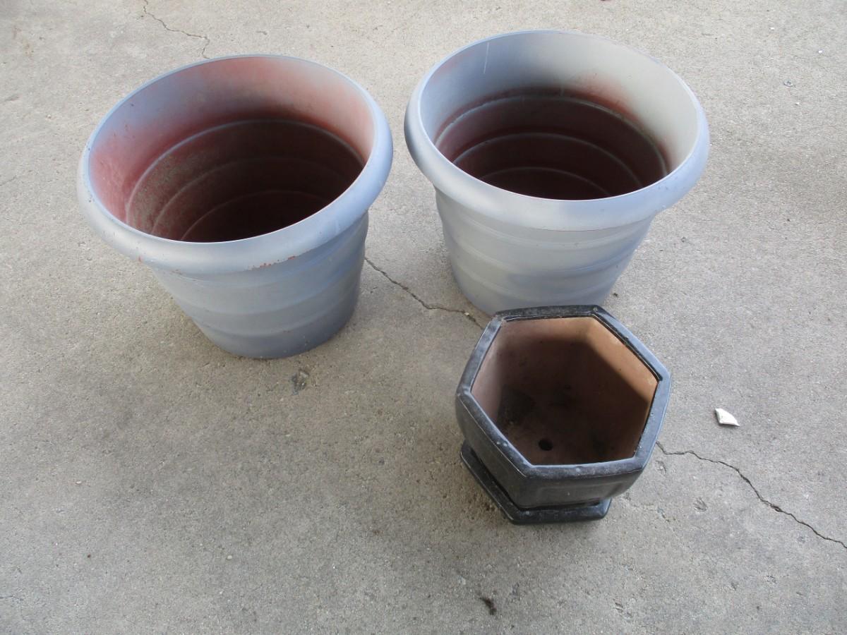 Collection of Flower Pots- 2 Plastic, 1 Ceramic