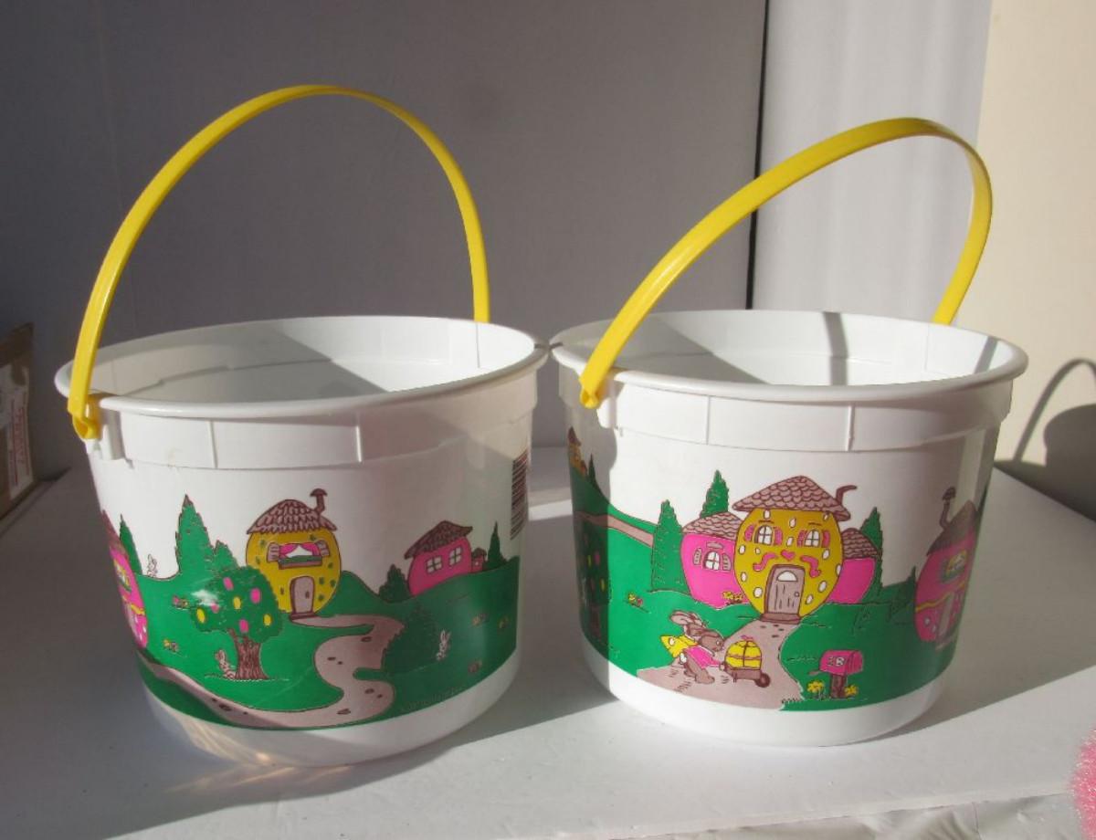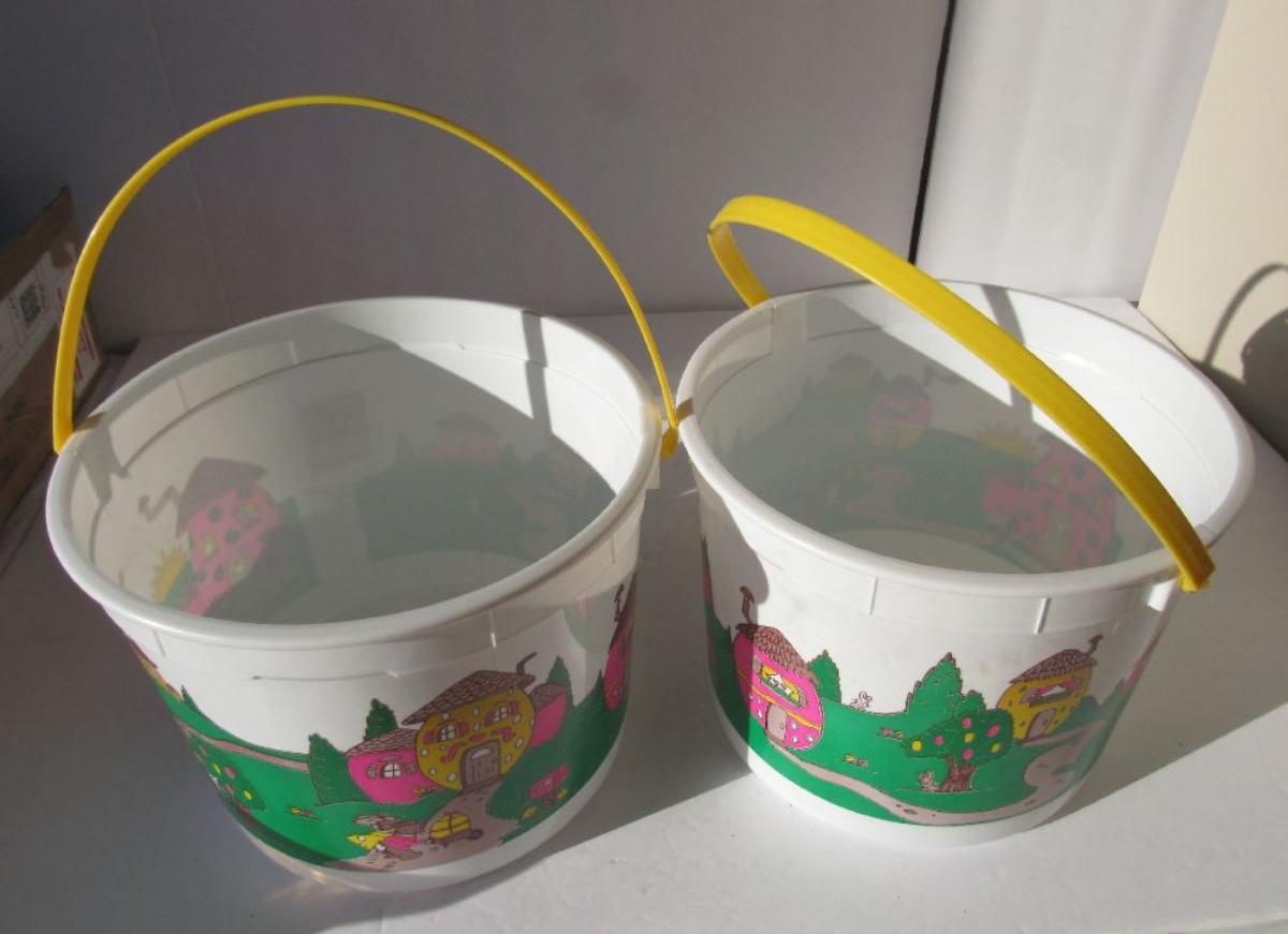 2 Plastic Easter Candy Pails With Foamy "Grass"