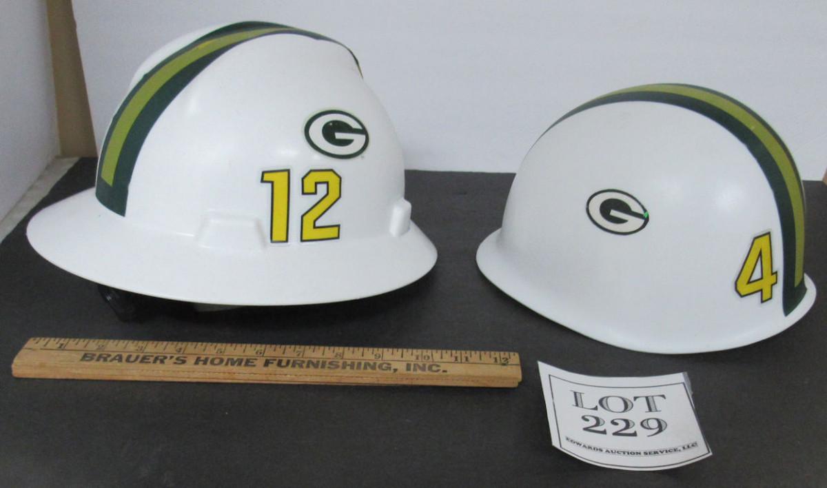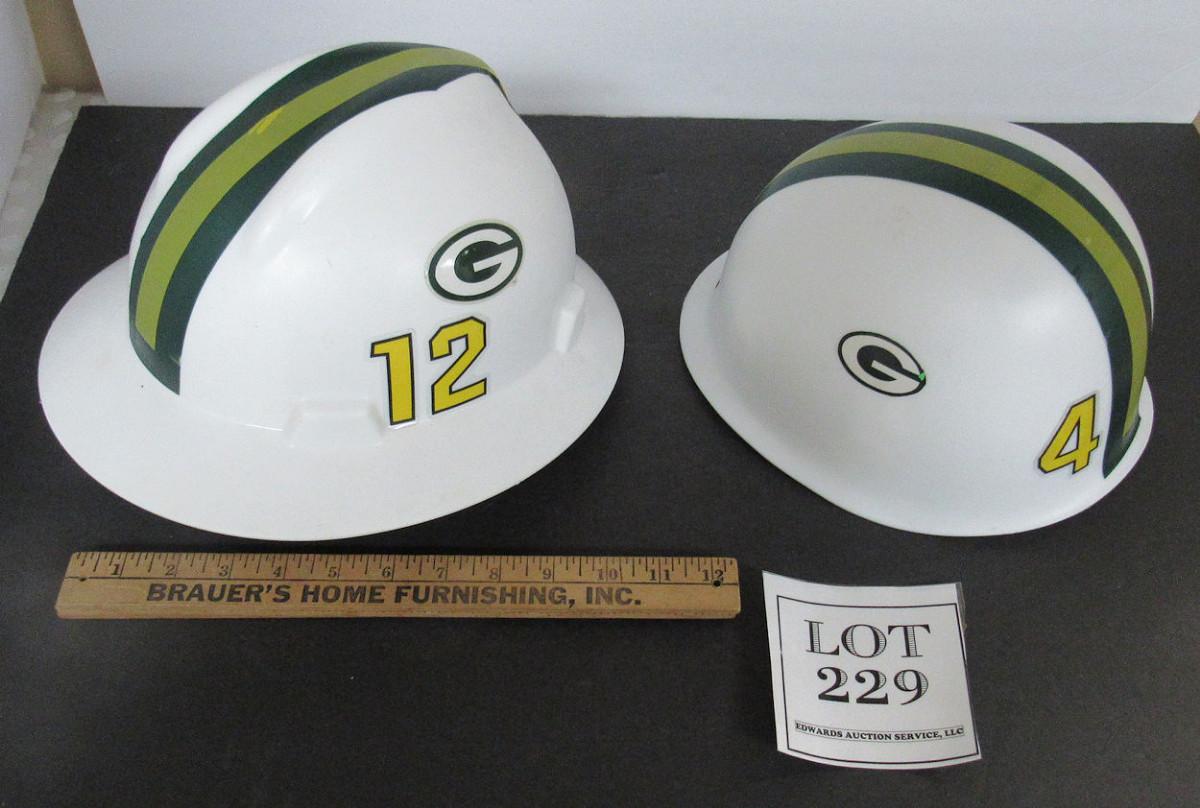 2 Plastic Hard Hats, Green Bay Packers #4, #12