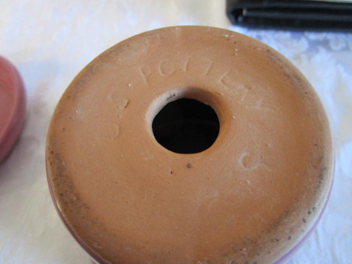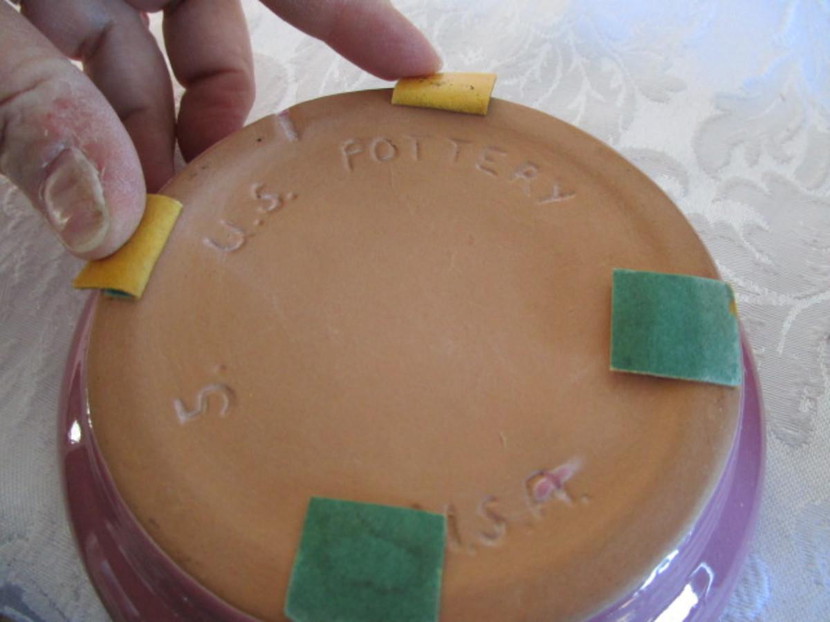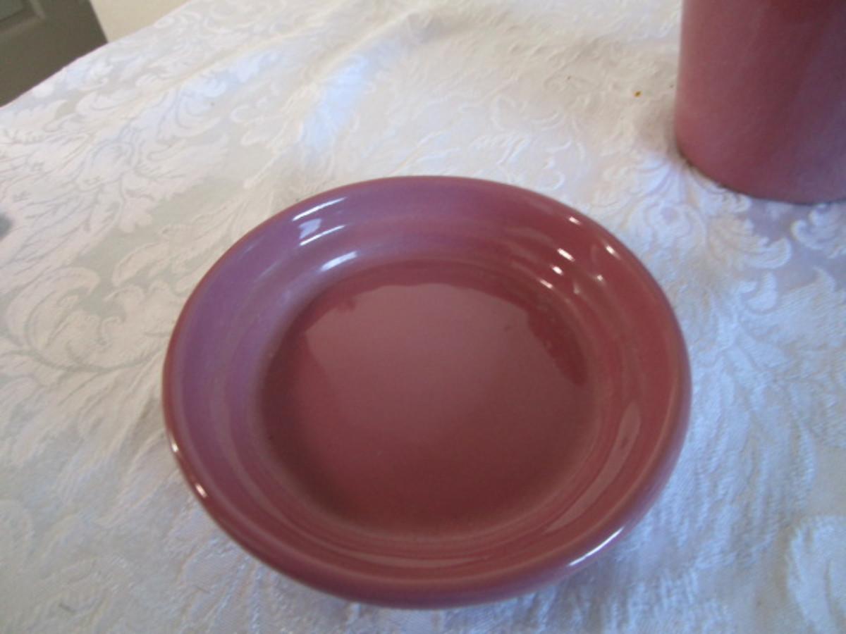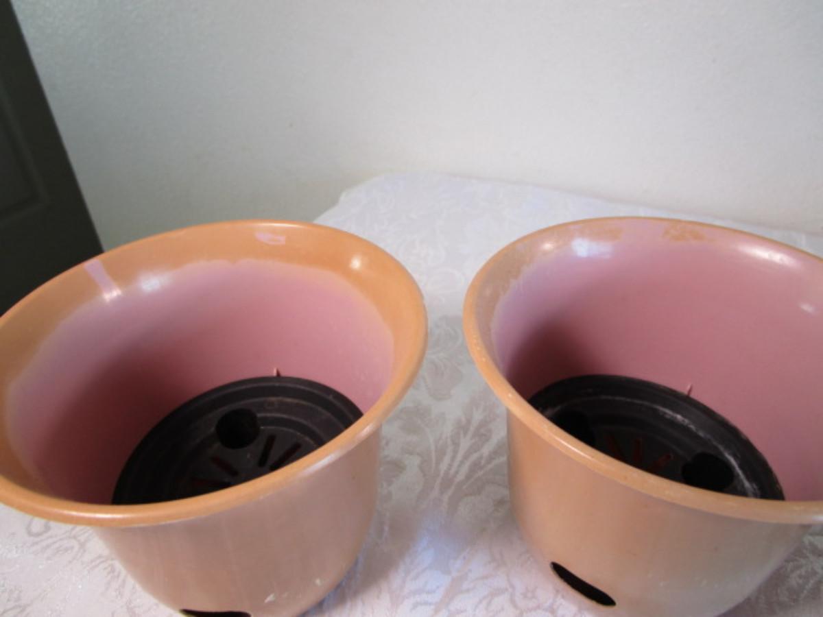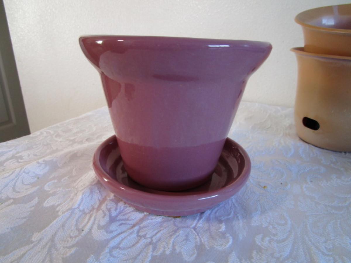 Plastic self watering pots are 4-1/4" tall, U. S. Pottery ceramic pot is 4-1/4" tall, saucer 5" in diameter, solid dusty pink reflection in picture is not part of the pot