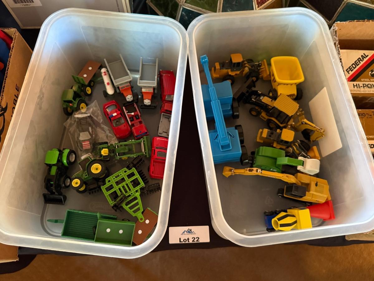 All Tractor & Trucks as shown in both plastic tubs + tubs