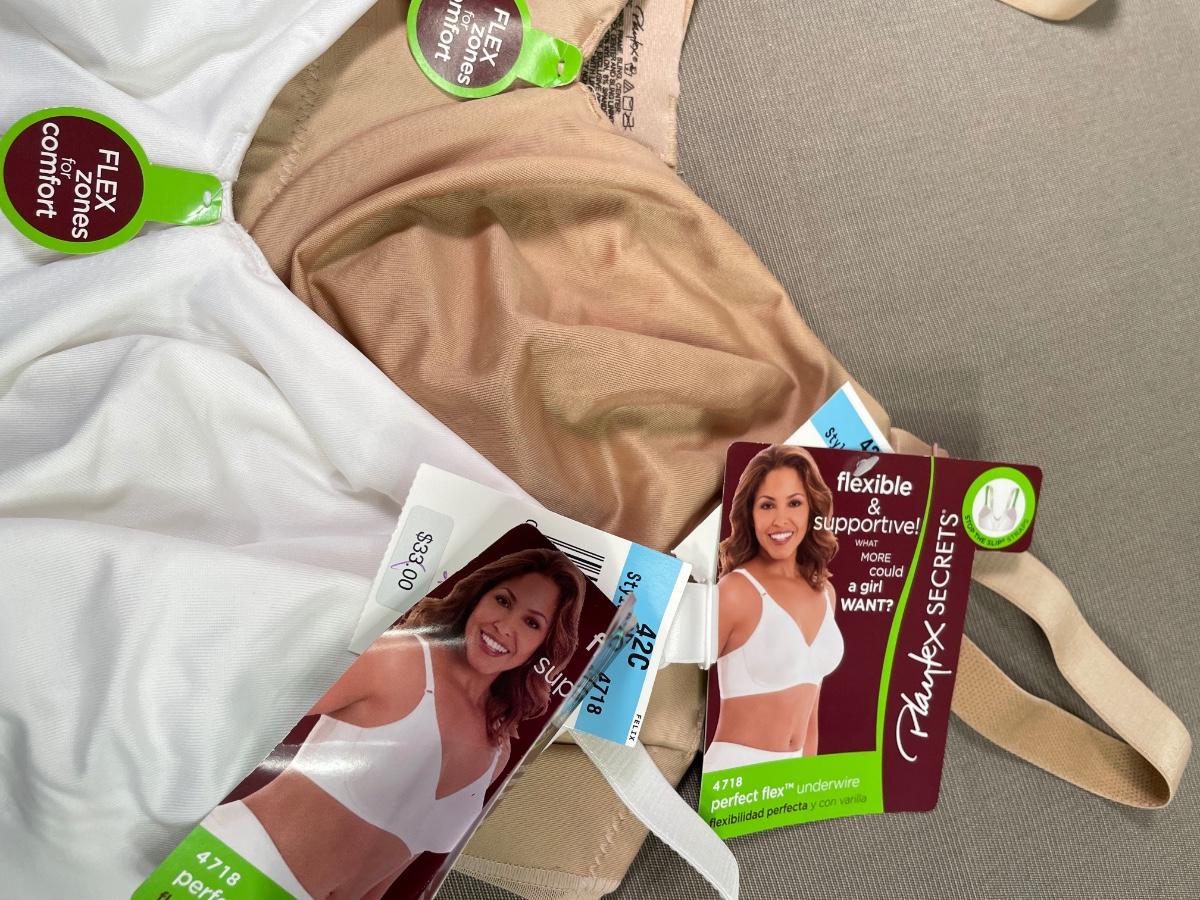 NWT Playtex Secrets flexible underwire bras in beige and white size 42C style 4718