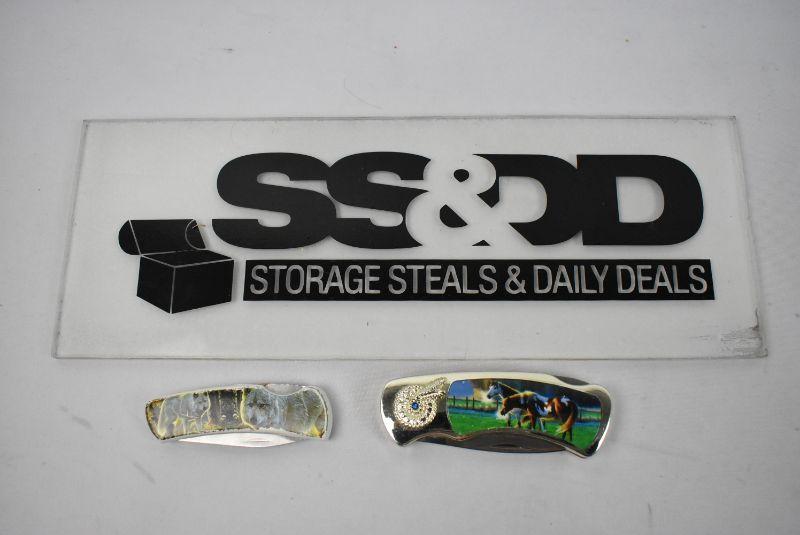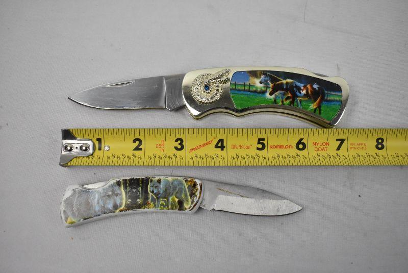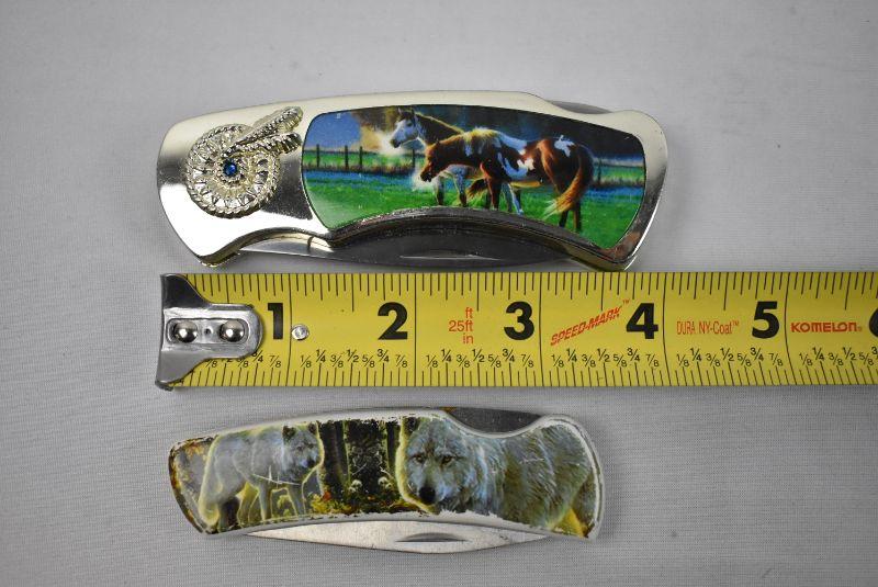 2 Pocket Knives: 7" Horses 6" Wolves