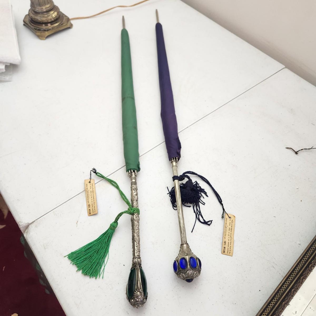 2 Polan Katz Boutique PK Umbrella Parasol USA Green Purple Ornate Handles
