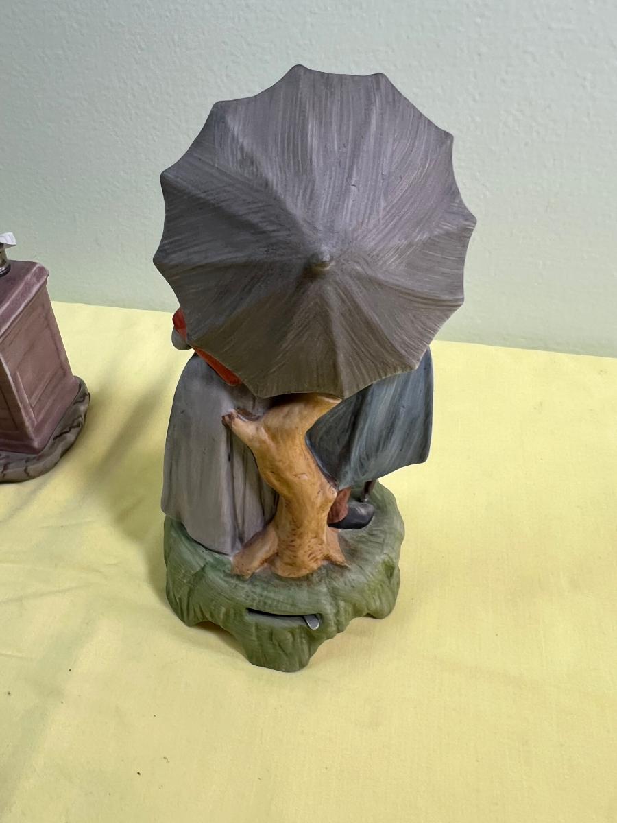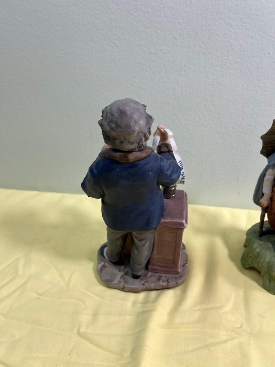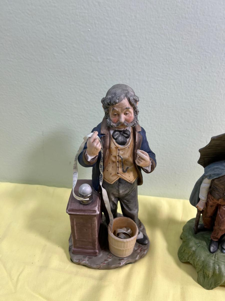 2 Porcelain Bisque Figurines; Stock Broker and Old Man & Woman w/Umbrella.