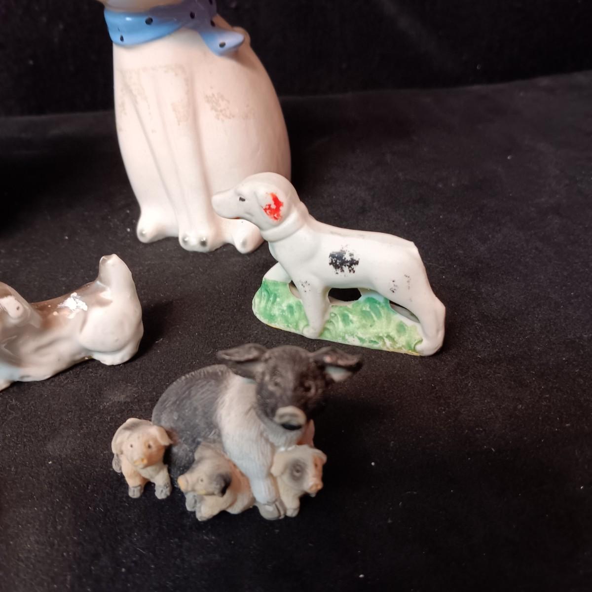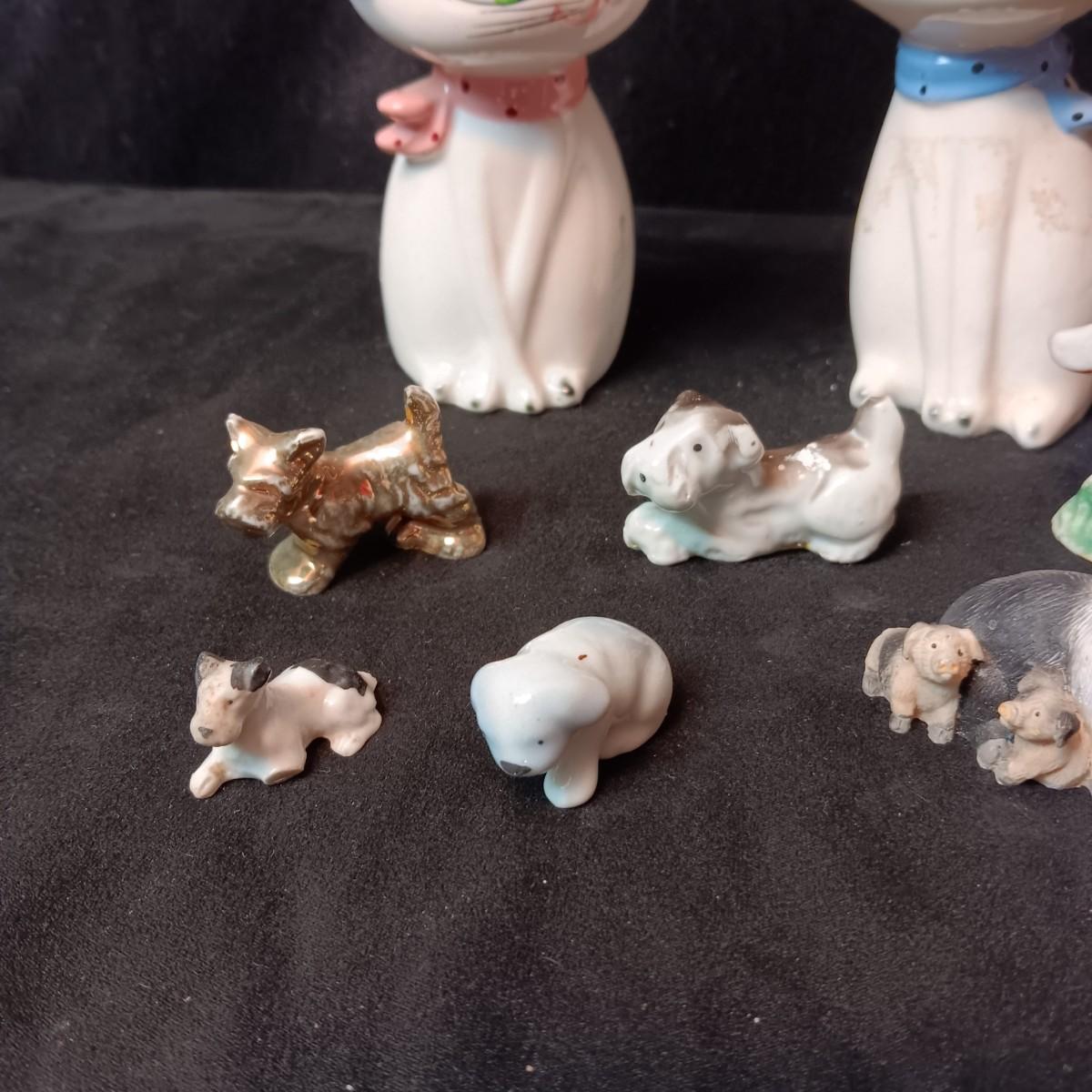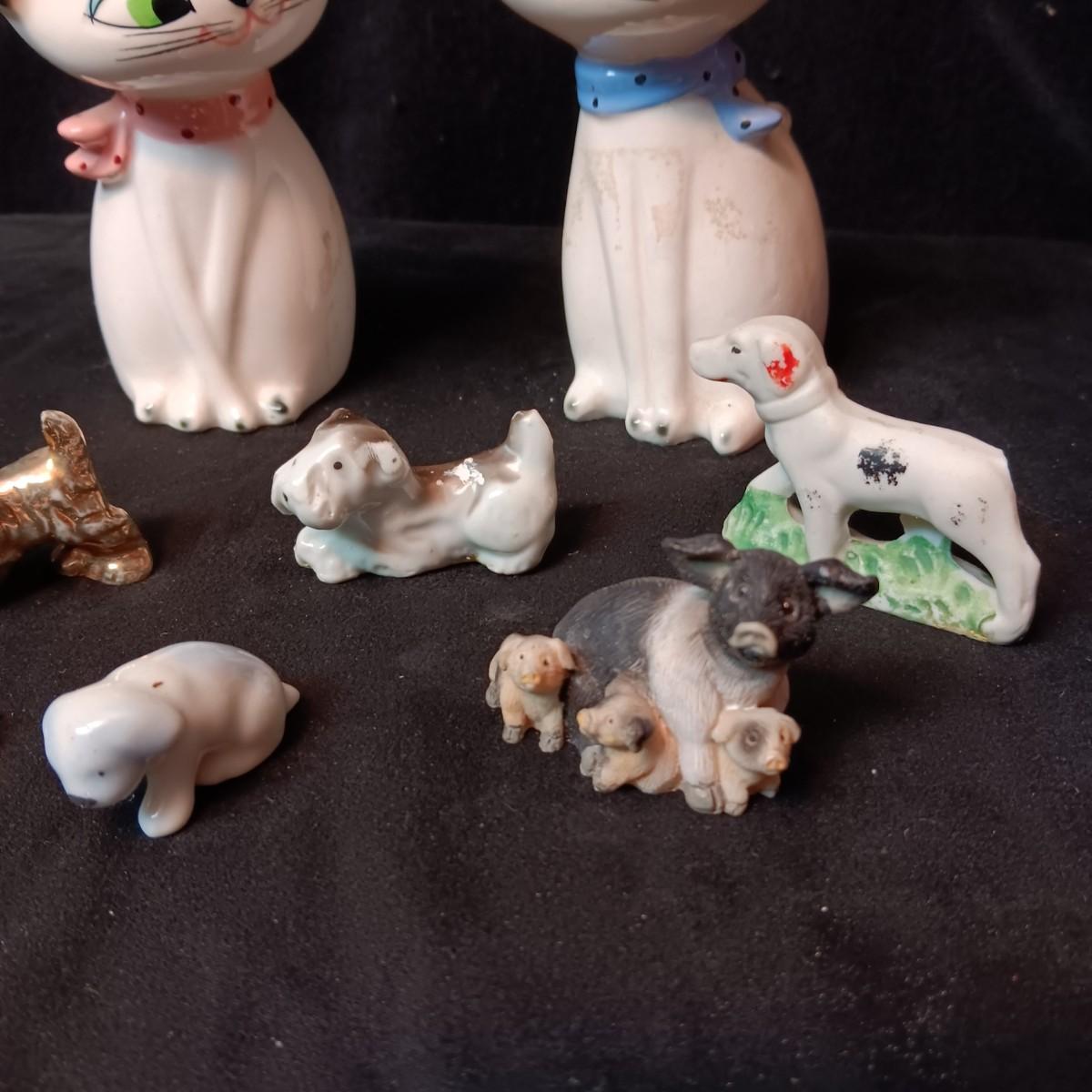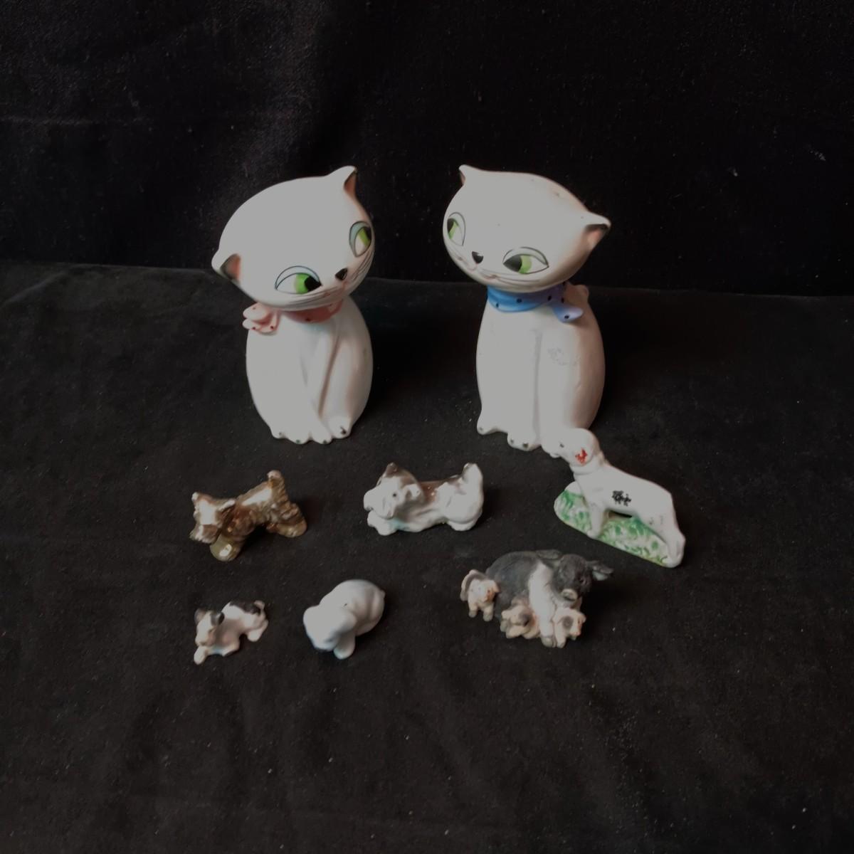 2 PORCELAIN CATS AND SEVERAL MINIATURE ANIMALS