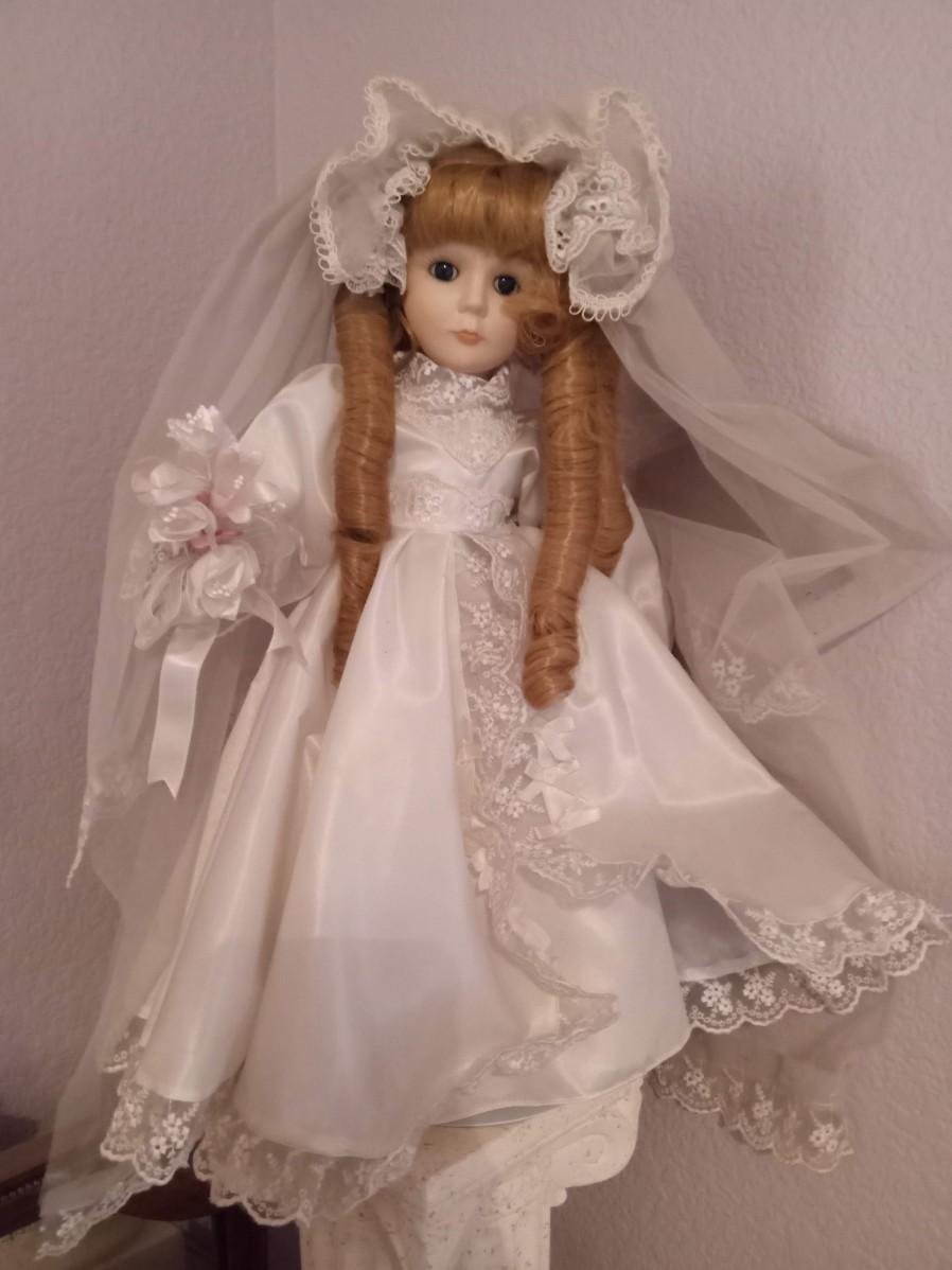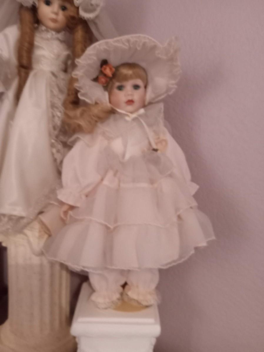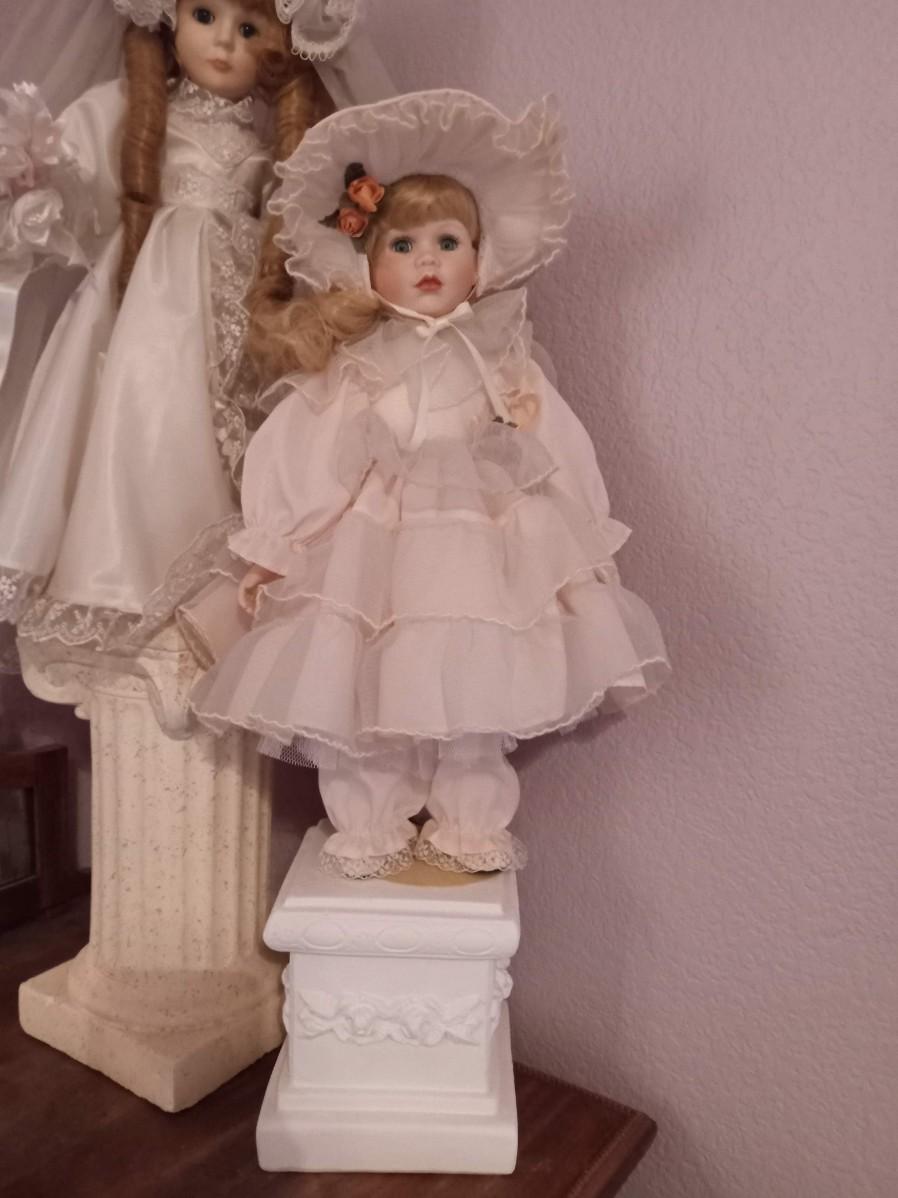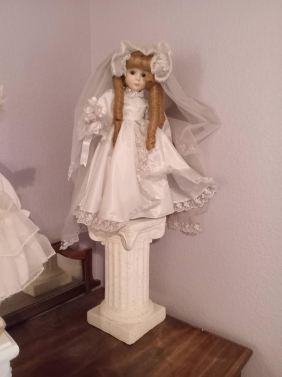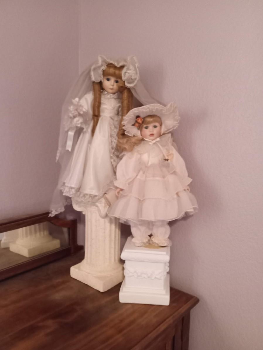 DOLLS ARE APPROX 16" TALL THE PEDESTALS ARE 12" AND 7'