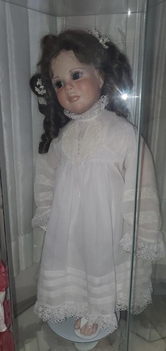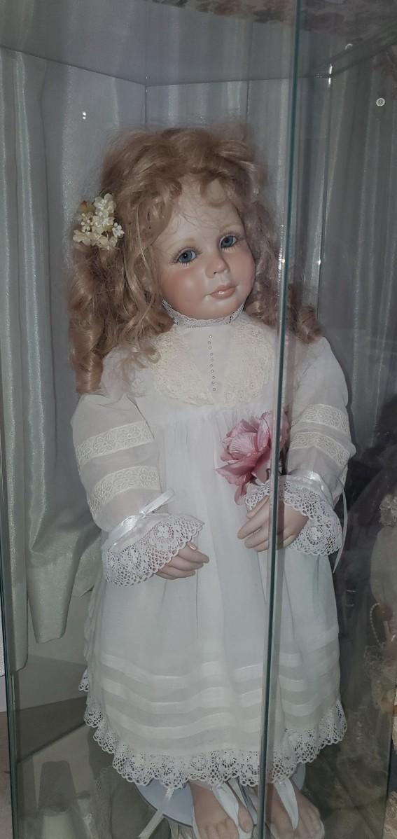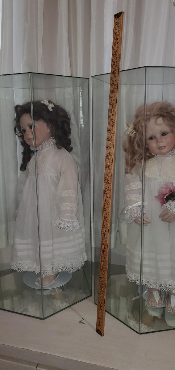 2 Porcelain Dolls in Display Cases Lot, LARGE DOLLS