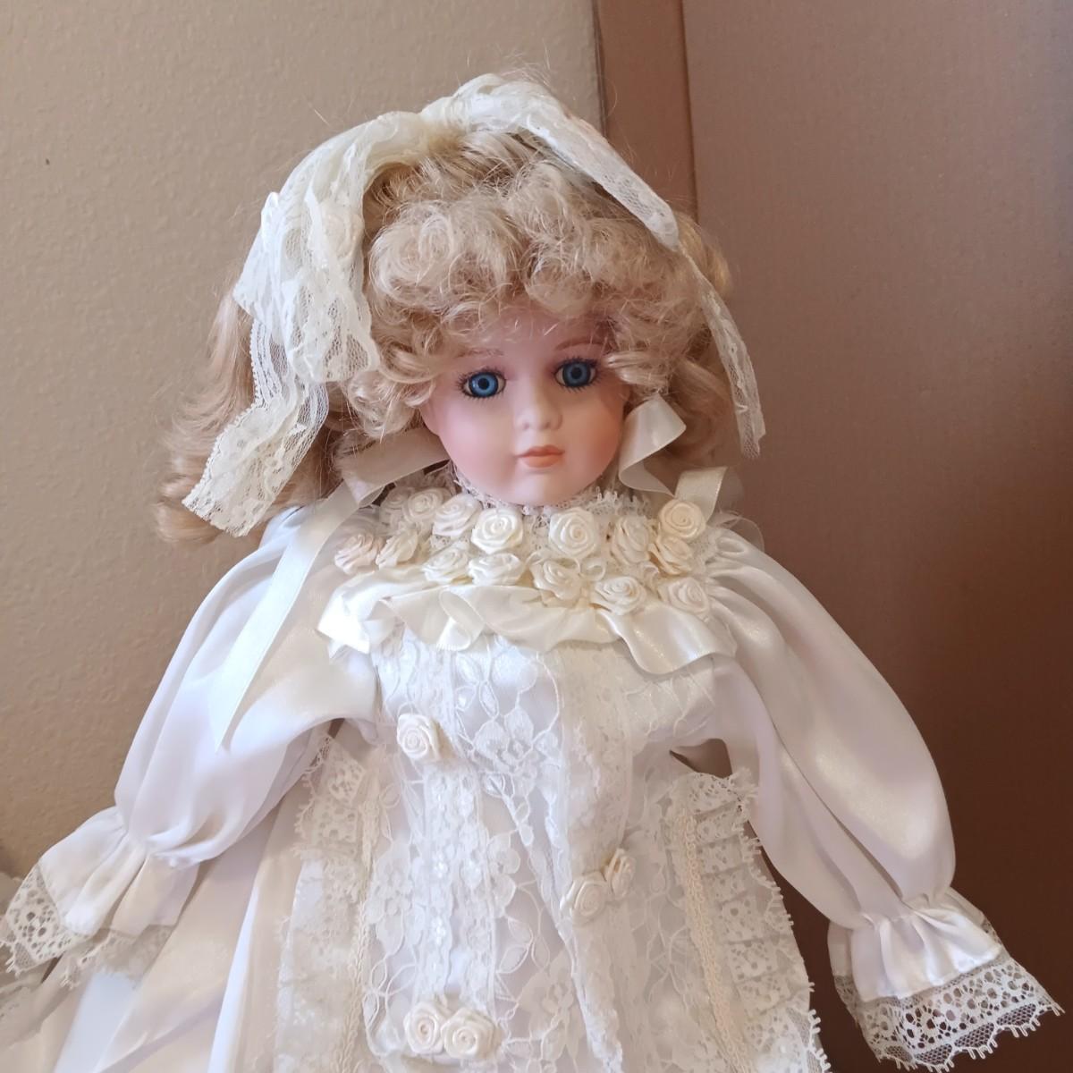 2 PORCELAIN DOLLS IN WEDDING DRESSES