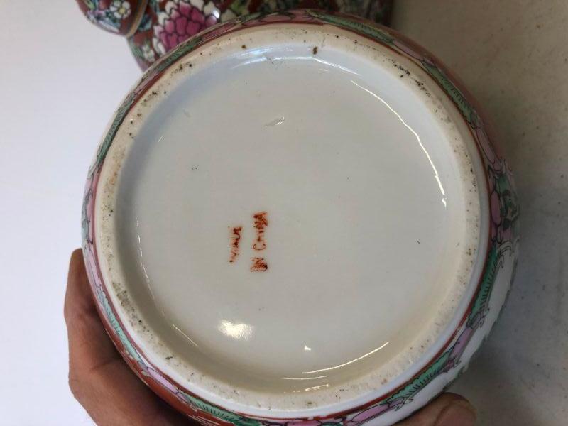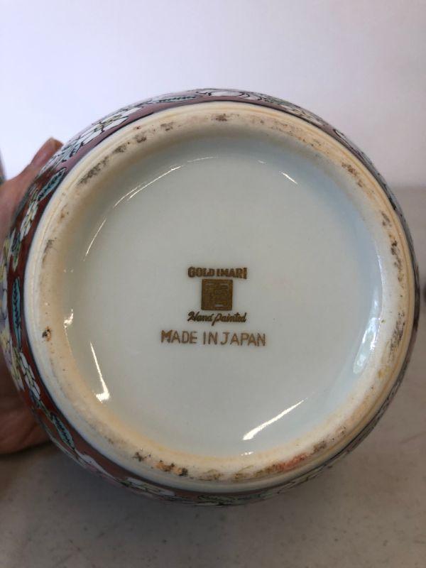 The taller measures 8.5" tall and the lower measures 7.5" tall. The red one is the one that has the Gold Imari stamped bottom.
