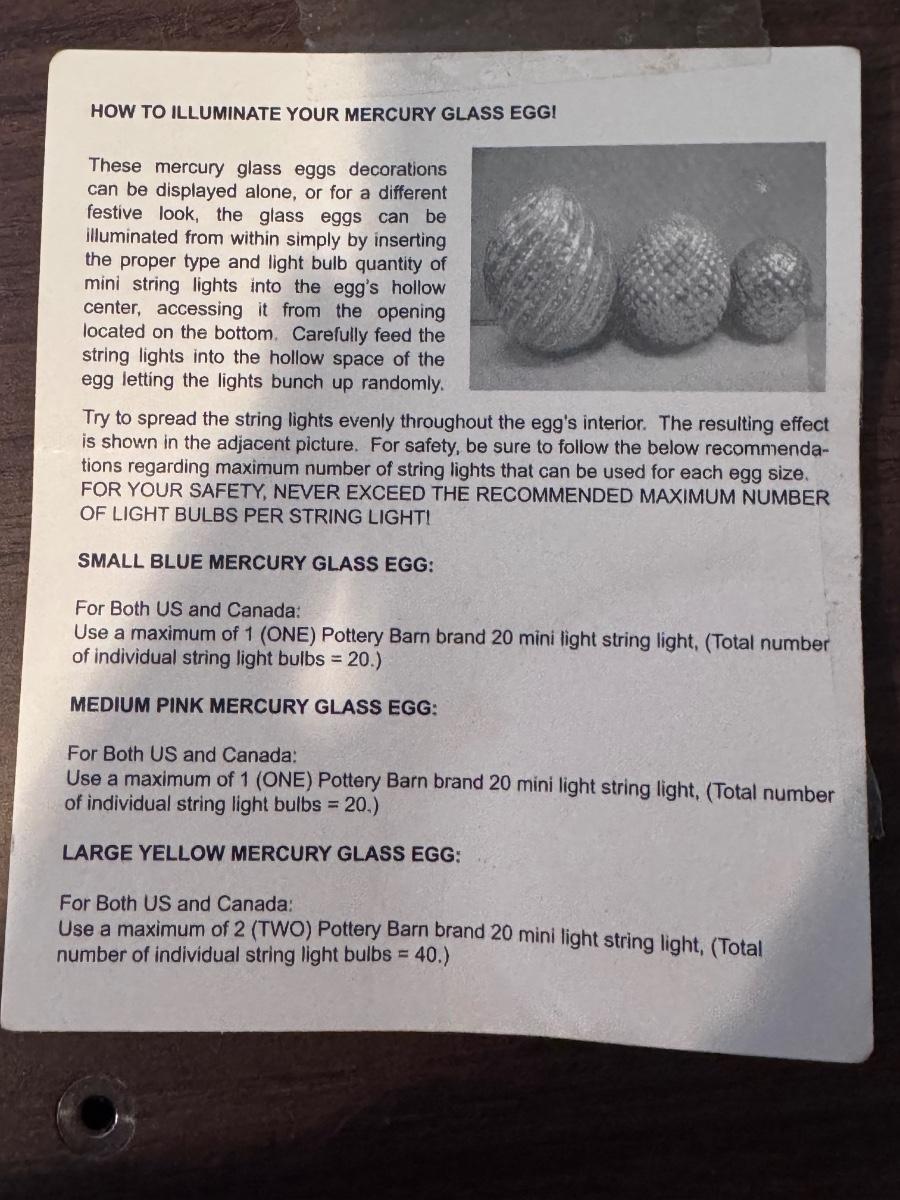 2- Pottery Barn Mercury Glass Easter Eggs (Lot 159B)