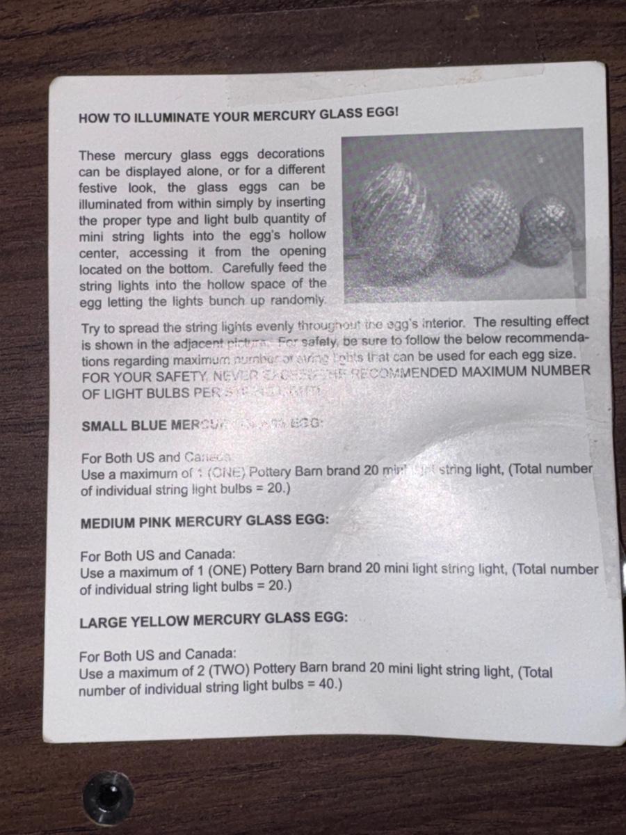 2- Pottery Barn Mercury Glass Easter Eggs (Lot 159B)