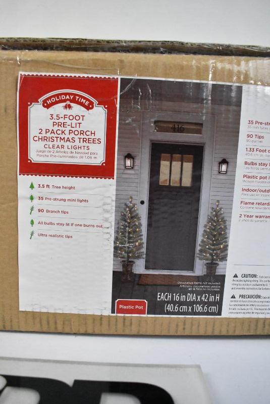 2 Prelit Trees, 3.5' Each, Holiday Time Bronze Conical Christmas Trees - New