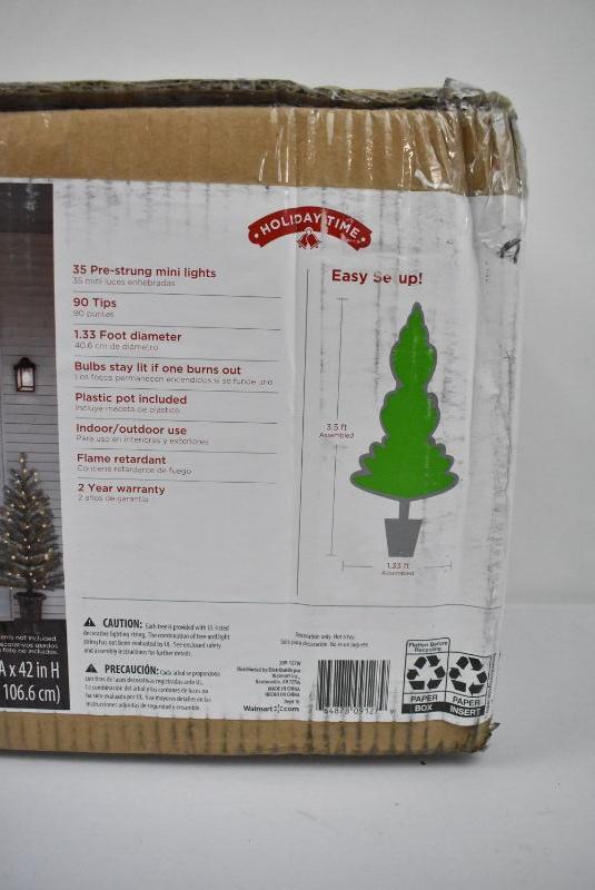 2 Prelit Trees, 3.5 Feet Each, Holiday Time Pre Lit Bronze Conical Christmas Trees - New