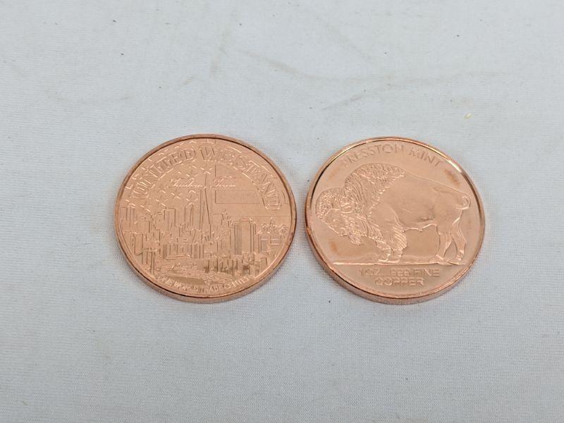 2 Preston Mint .999 oz Fine Copper Coins: Buffalo, United We Stand - New