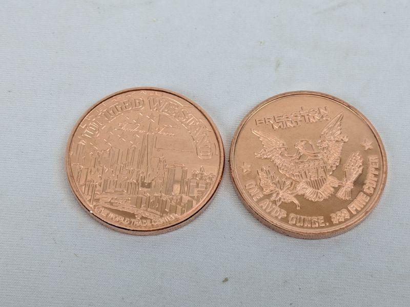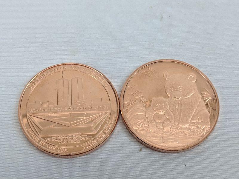 2 Preston Mint .999 oz Fine Copper Coins: United We Stand, Bears - New