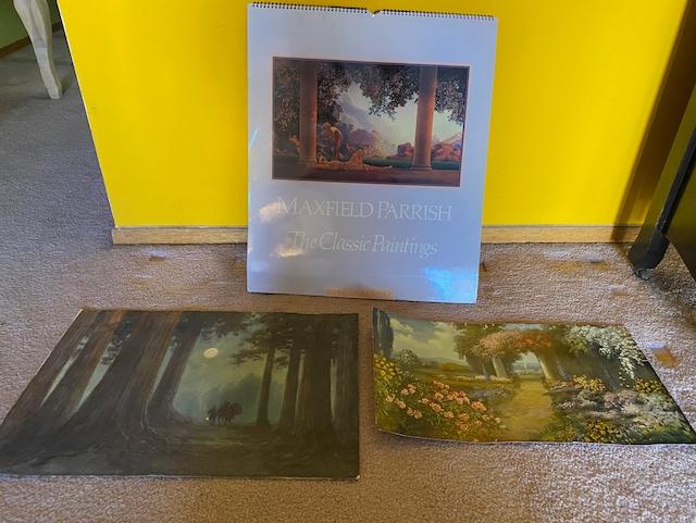 2 prints and a vintage Maxfield Parrish 1988 calendar