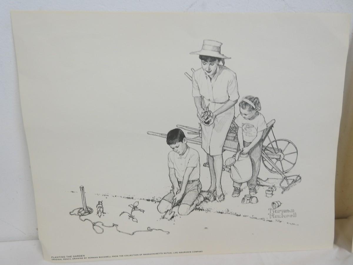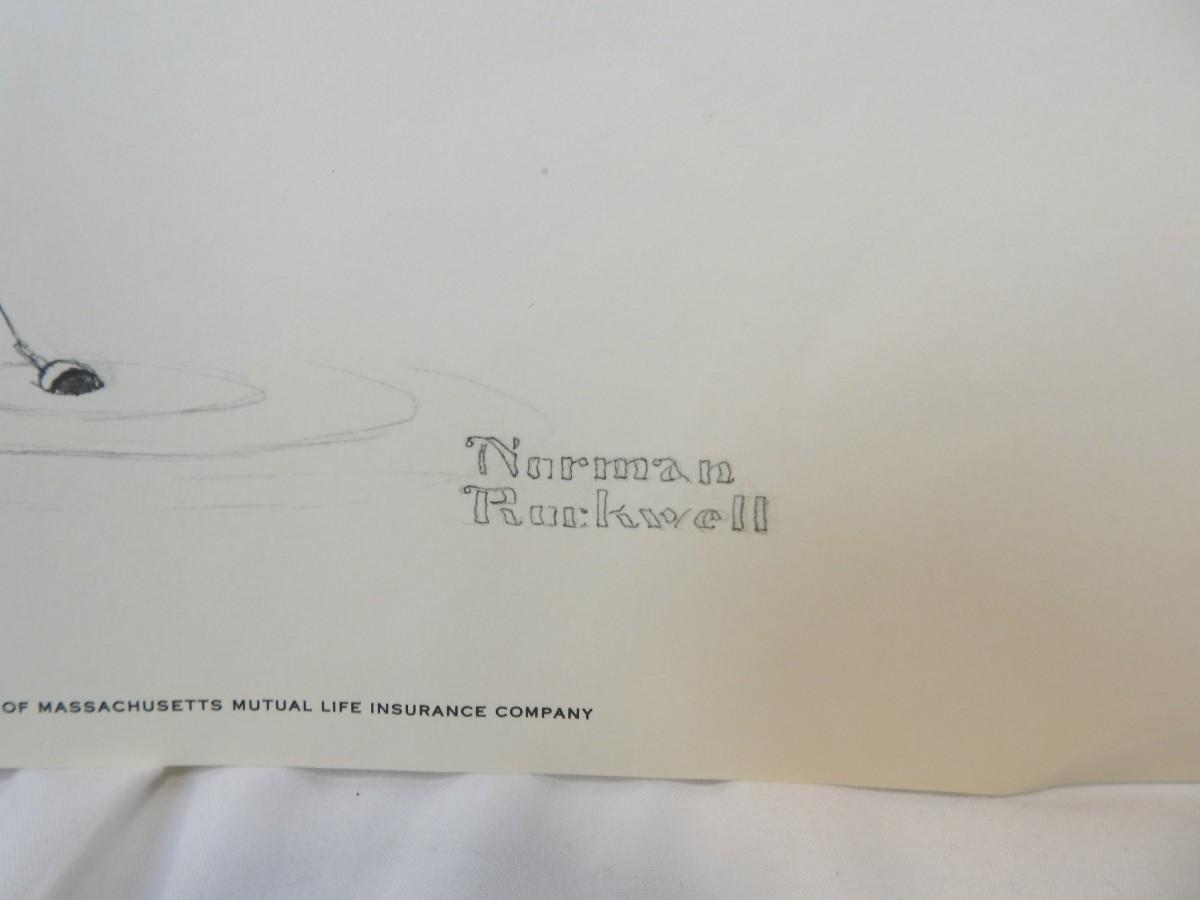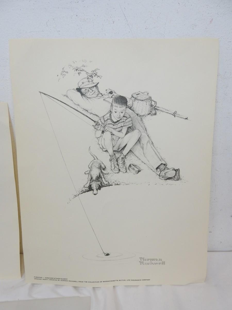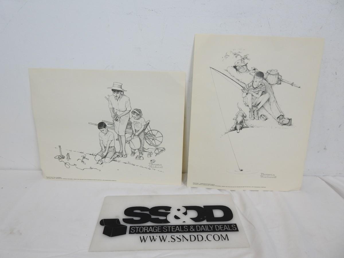 2 Prints Pencil Drawings By Norman Rockwell from Massachusetts Life Ins Co.