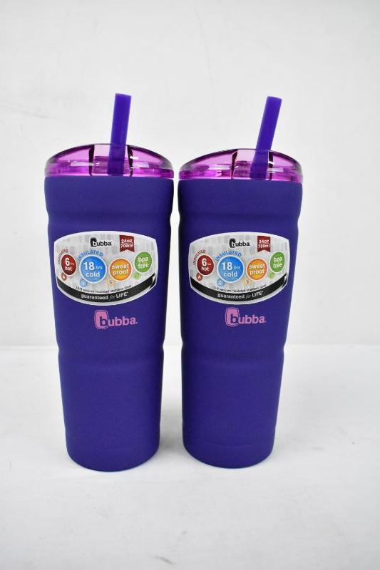 2 Purple Water Bottles with Lids & Straws: 24 oz by Bubba - New