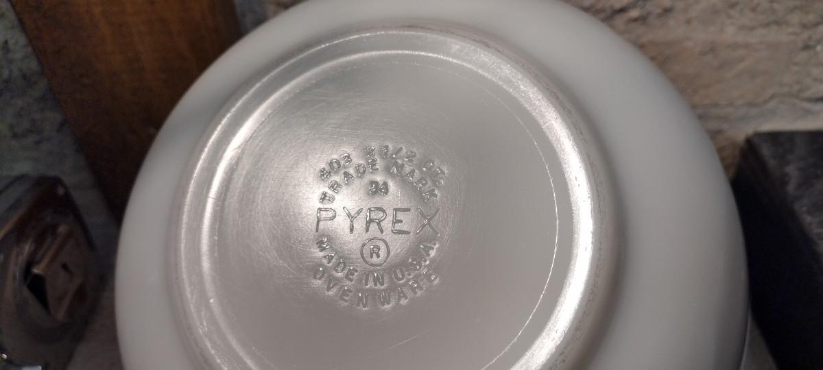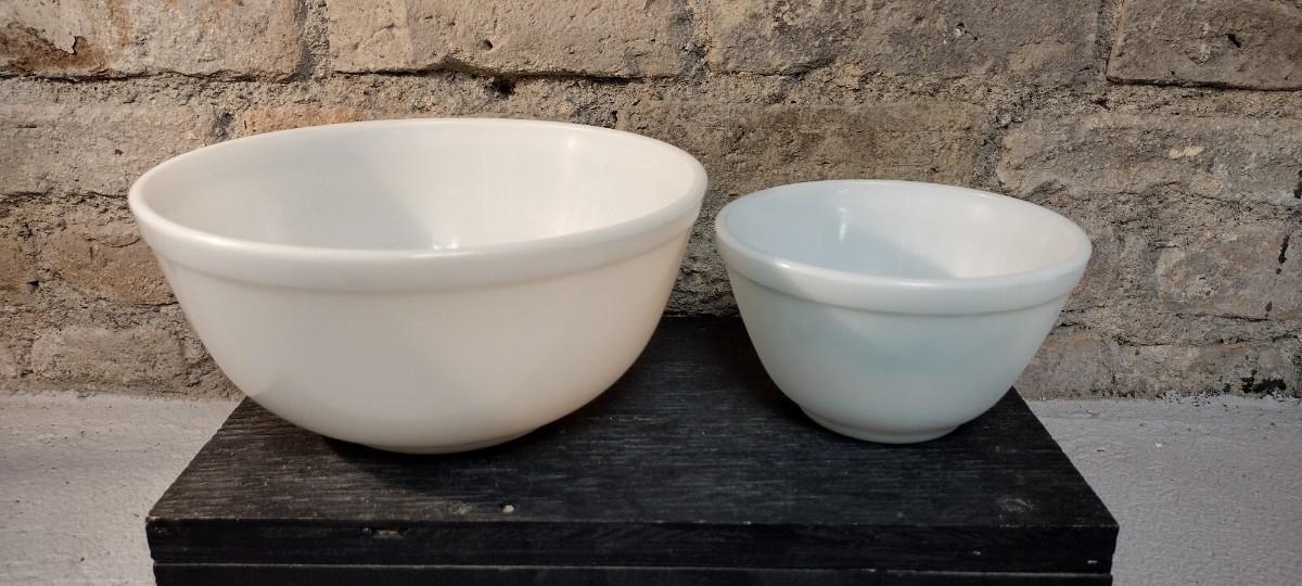 Set of 2 DWD Pyrex Bowls - I am assuming they were Butterprint but the pattern is mostly gone. These would be fantastic to use because you don't have to worry about putting them in the dishwasher!!
