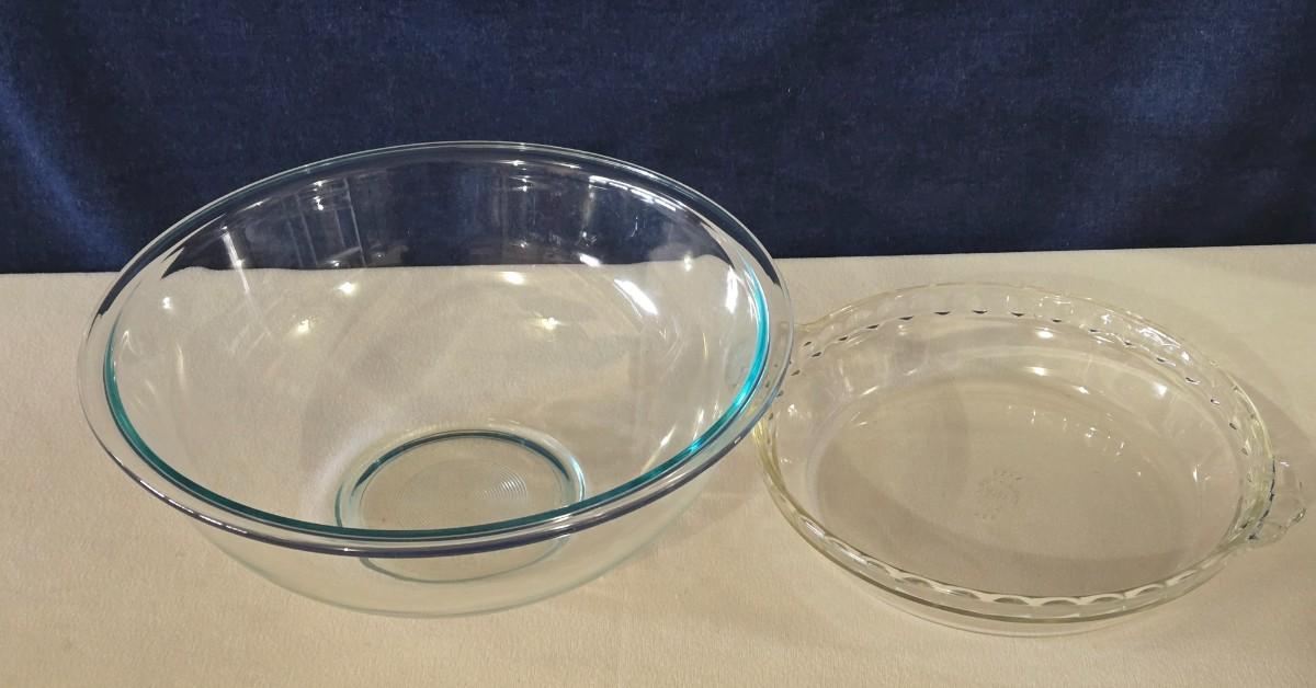 2 Pyrex Dishes - Mixing Bowl and Pie Plate