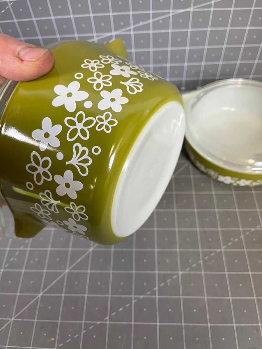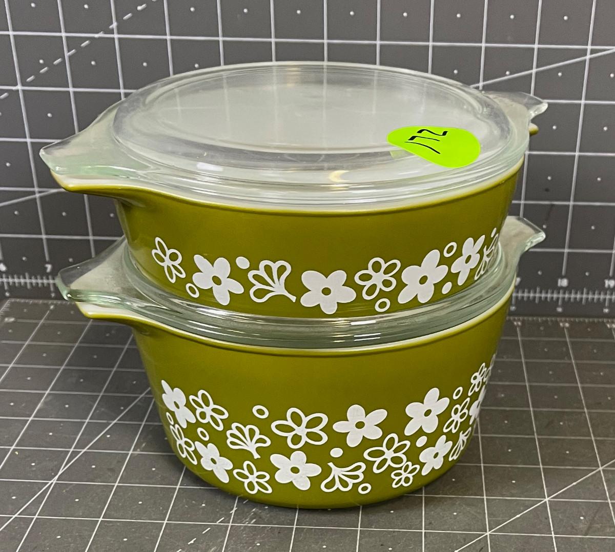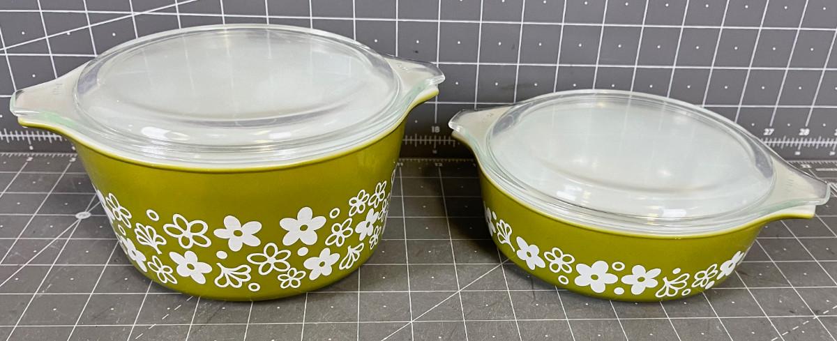 (2) Pyrex Green Daisy Covered Dishes