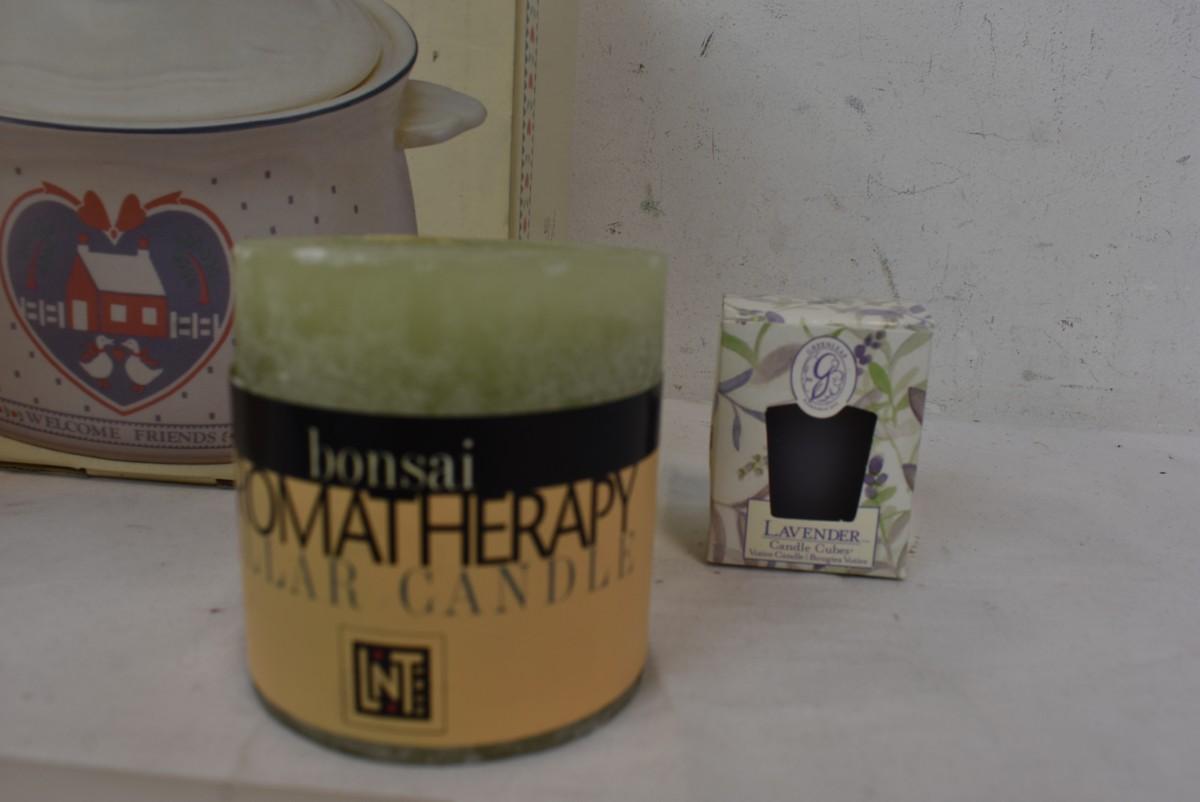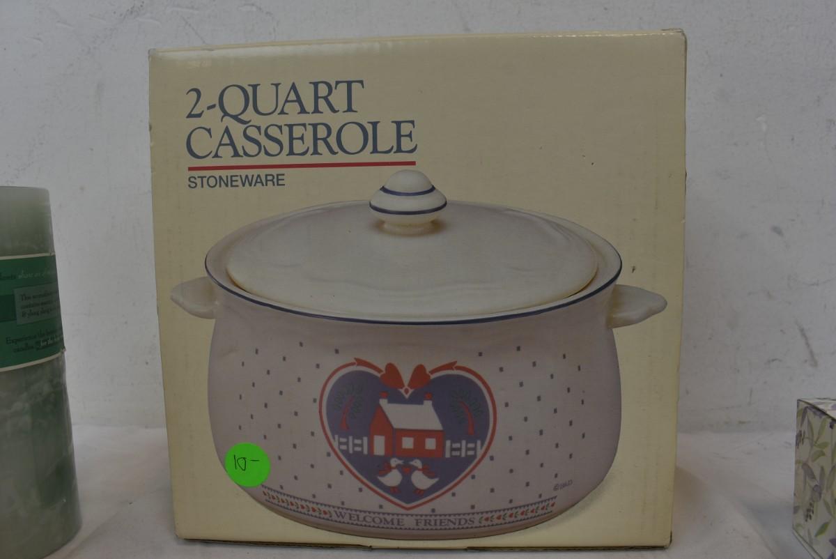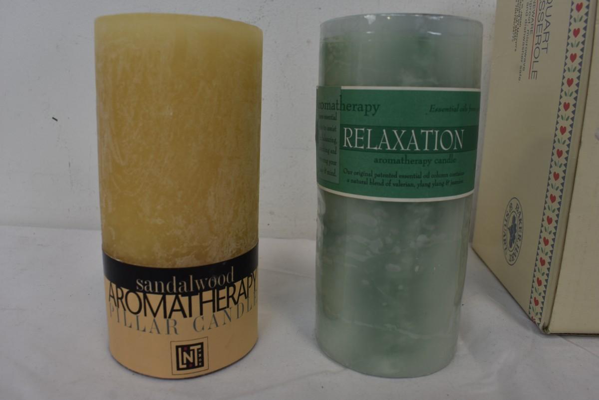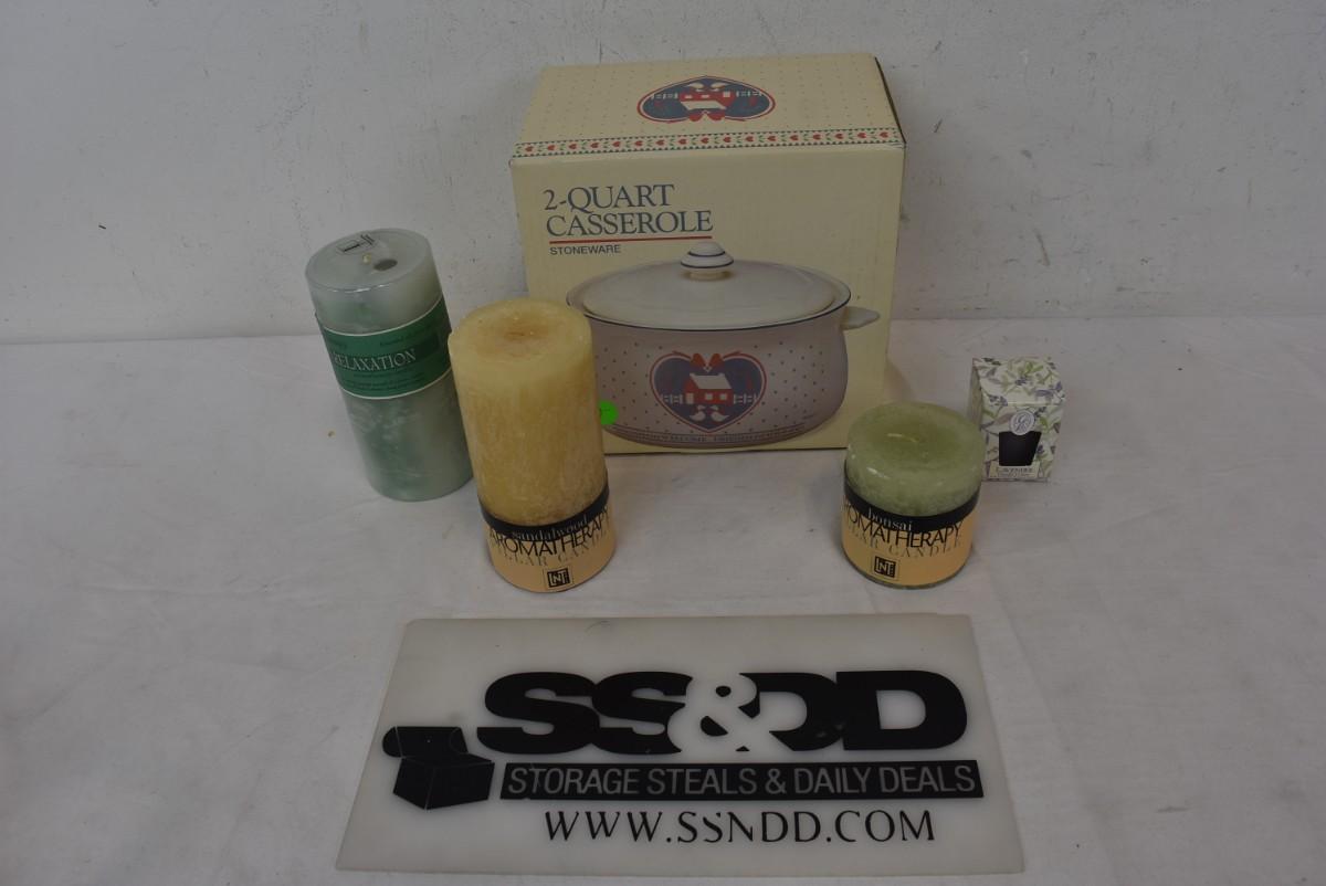 2 Quart Stoneware Casserole, AromaTherapy Pillar Candles, Lavender Candle - New