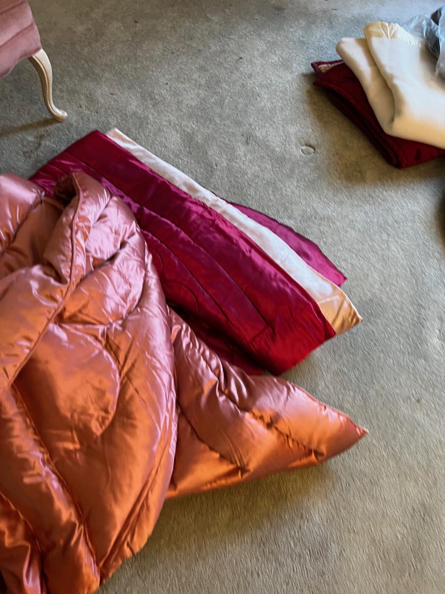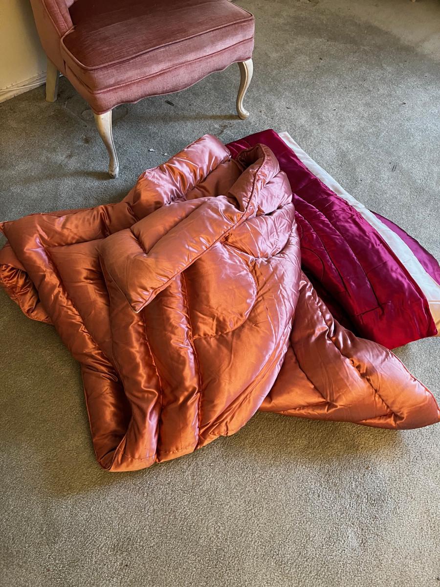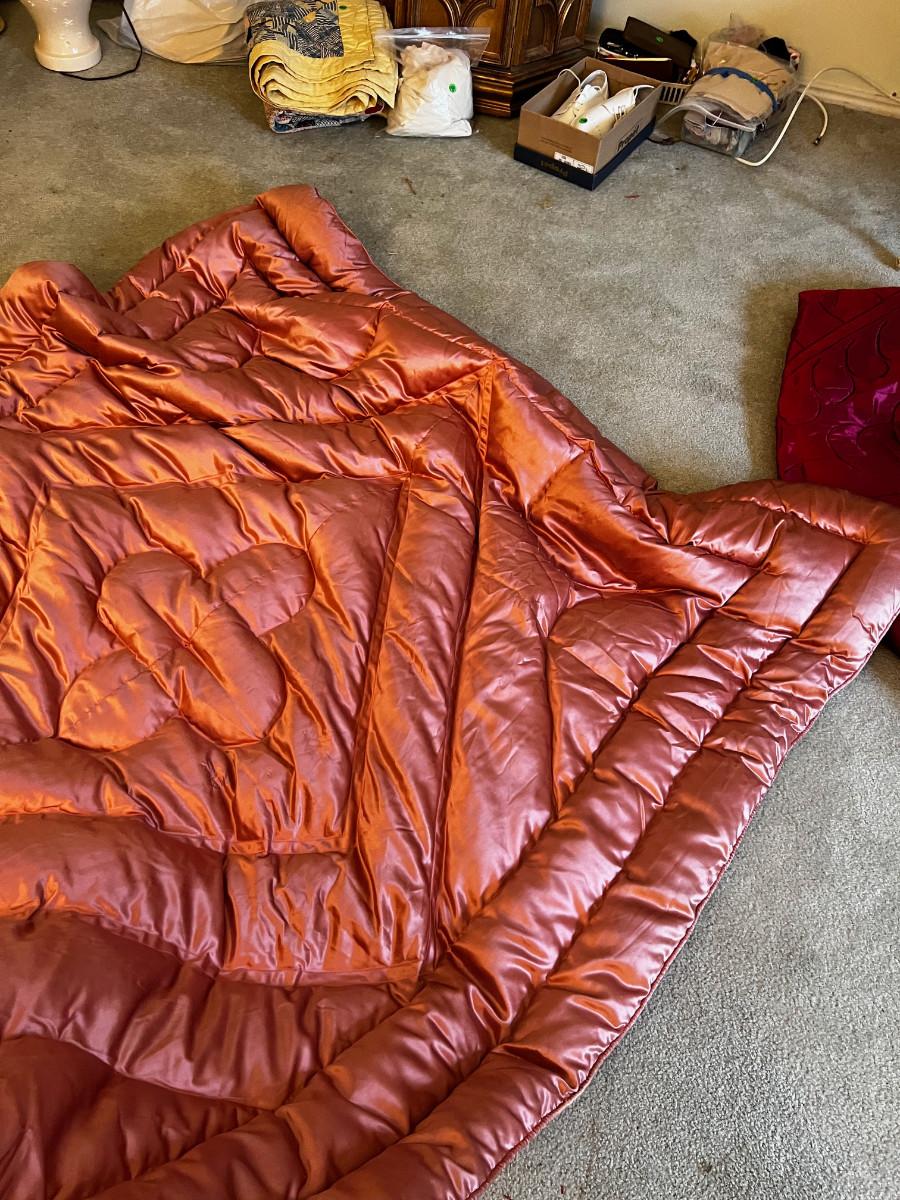 Hand Crafted Satin. Pretty. Nice. Not A perfect fit but like a topper. Still very Pretty.