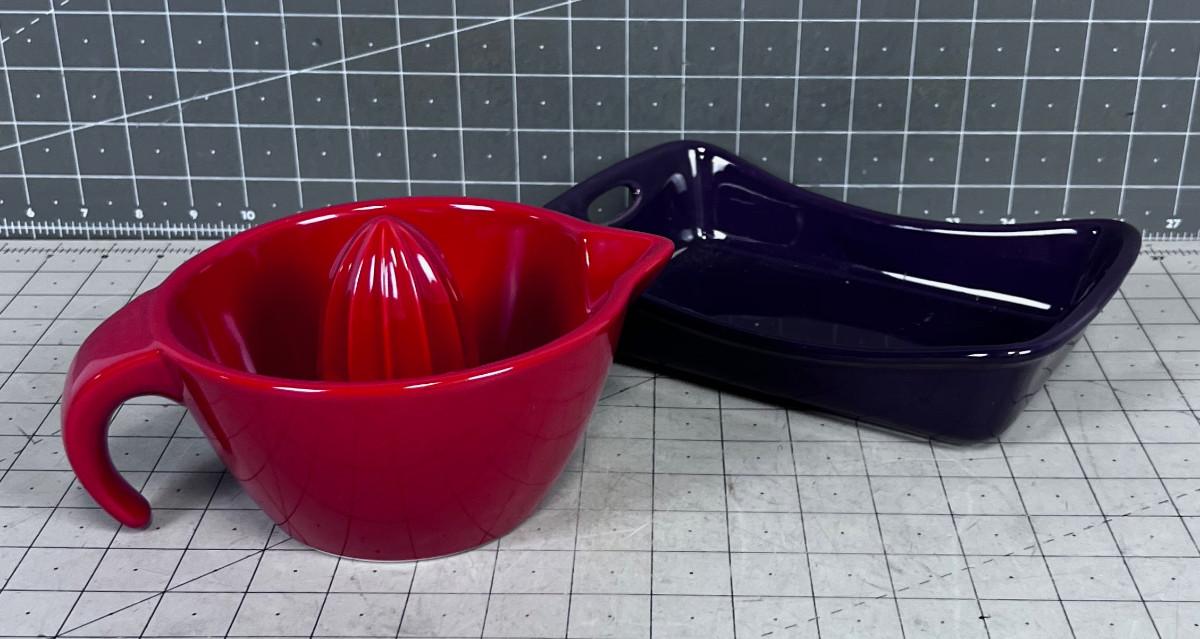 (2) RACHEL RAY - Red Juicer and Purple Mini Tray, Both Ceramic, NEW