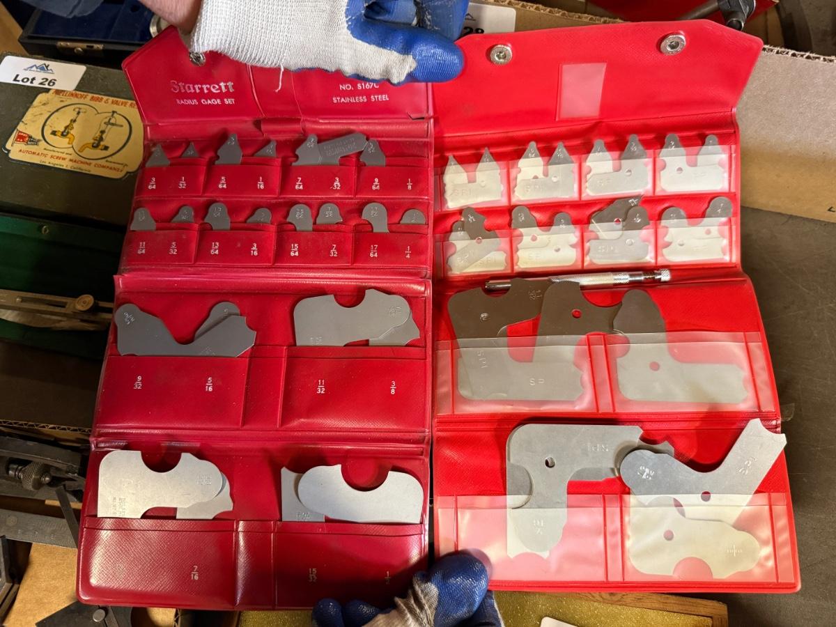 2 Radius Gauge Sets in red vinyl cases