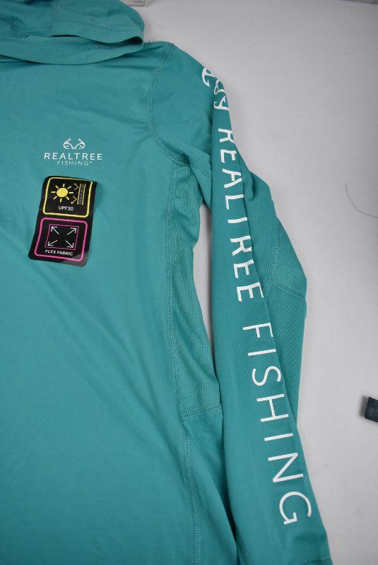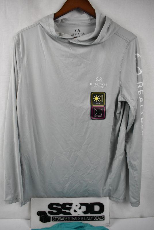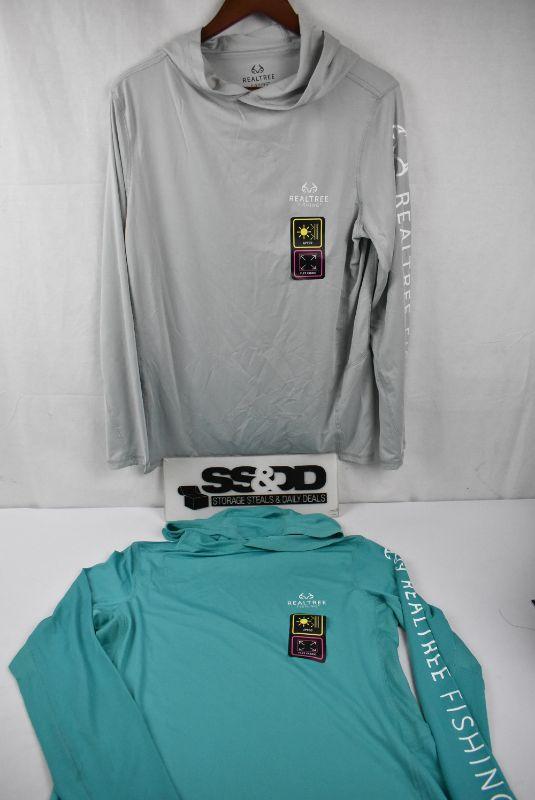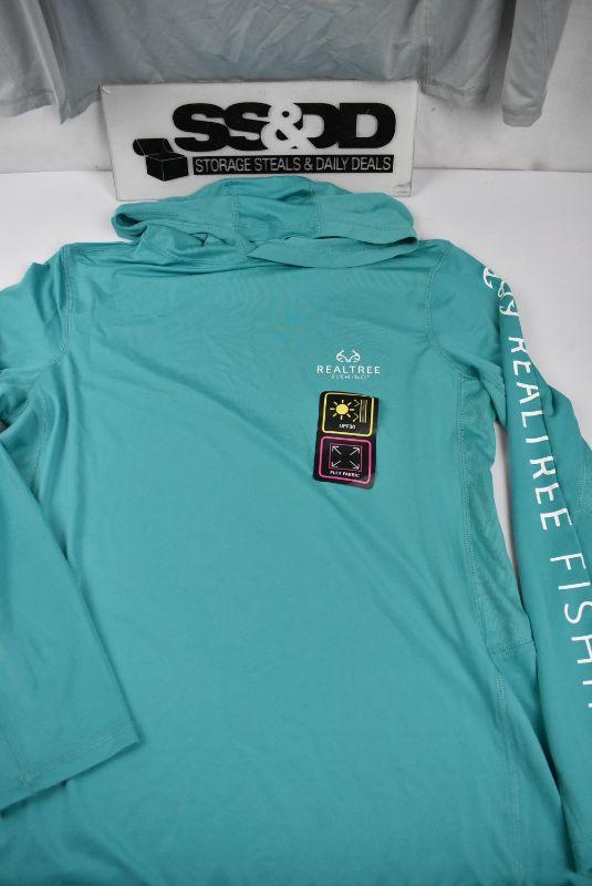 2 Realtree Men's Long Sleeve Performance Fishing Hoodies Size Medium. 1 Gray 1 Teal - New