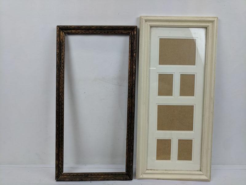 2 Rectangular Frames, White & Brown - One Missing Back Piece/Glass