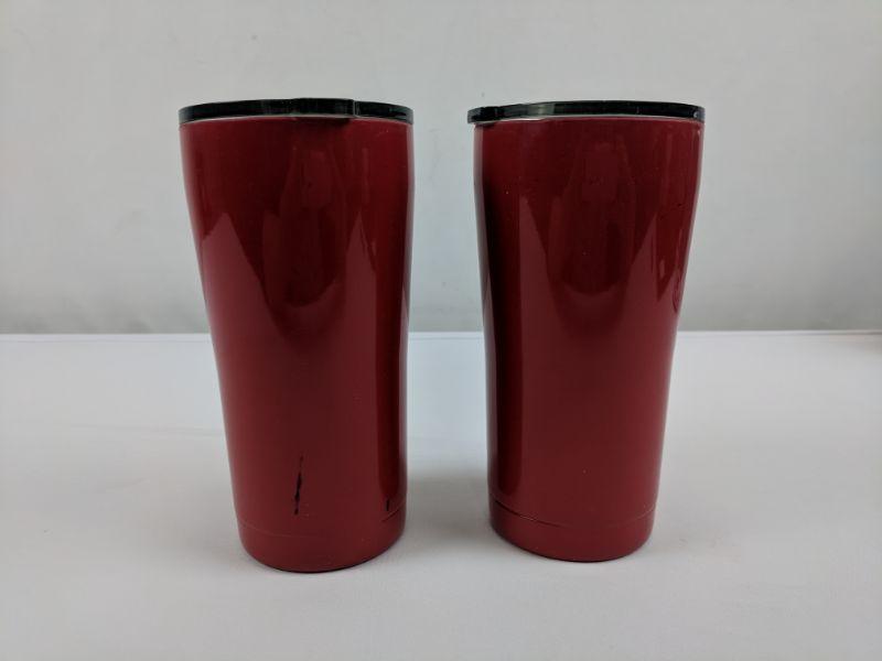 2 Red 20-Oz Vacuum Insulated Powder Coated Stainless Steel Tumbler, Qty 2 - New