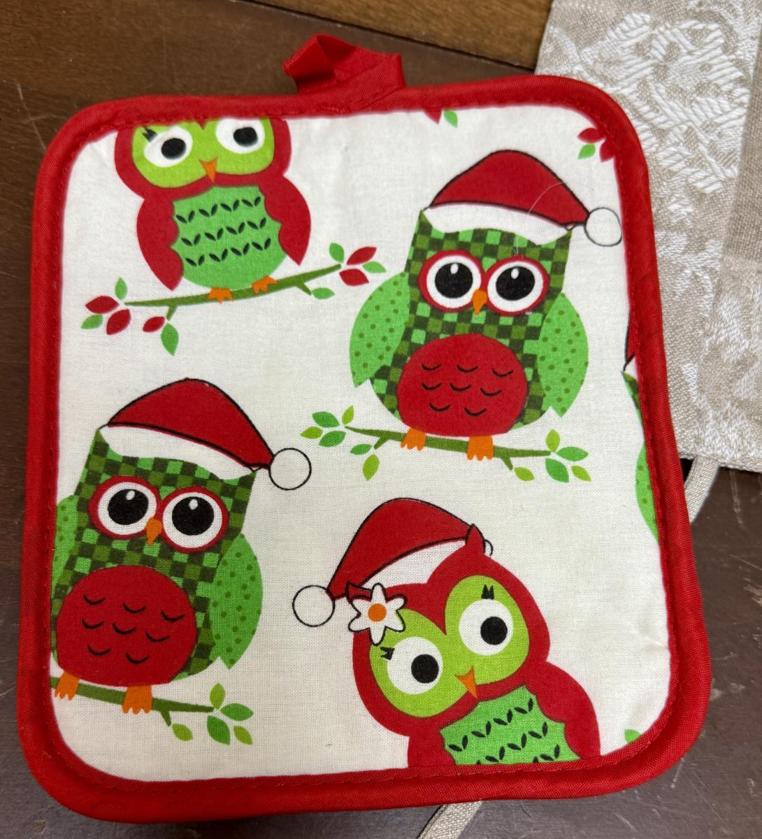 2 Red & Green Christmas Owls in Santa Outfit
